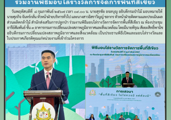 กรมป่าไม้ร่วมงานพิธีมอบโล่รางวัลการจัดการพื้นที่สีเขียว ณ กรมการเปลี่ยนแปลงสภาพภูมิอากาศและสิ่งแวดล้อม9 กุมภาพันธ์ 2024 by nursery