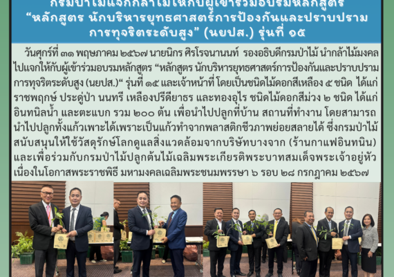 กรมป่าไม้แจกกล้าไม้ให้กับผู้เข้าร่วมอบรม “หลักสูตร นักบริหารยุทธศาสตร์การป้องกันและปราบปรามการทุจริตระดับสูง” (นยปส.) รุ่นที่ ๑๕31 พฤษภาคม 2024 by nursery