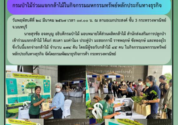 กรมป่าไม้ร่วมแจกกล้าไม้ในกิจกรรมมหกรรมทรัพย์หลักประกันทางธุรกิจ ระหว่างวันที่ 27-28 มีนาคม 2567 ณ กระทรวงพาณิชย์ จ.นนทบุรี2 เมษายน 2024 by nursery