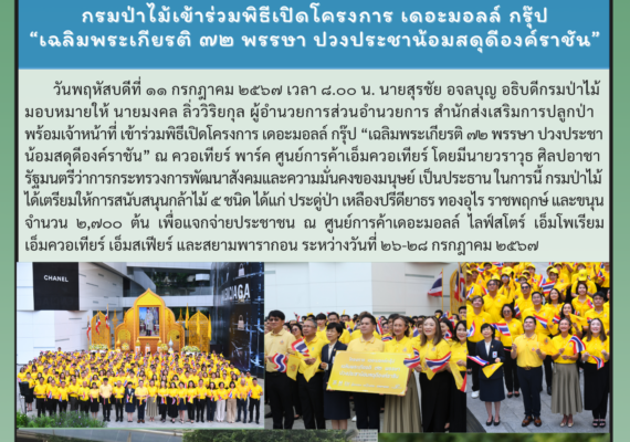 กรมป่าไม้เข้าร่วมพิธีเปิดโครงการ เดอะมอลล์ กรุ๊ป “เฉลิมพระเกียรติ ๗๒ พรรษา ปวงประชาน้อมสดุดีองค์ราชัน” ณ ศูนย์การค้าเอ็มควอเทียร์12 กรกฎาคม 2024 by nursery