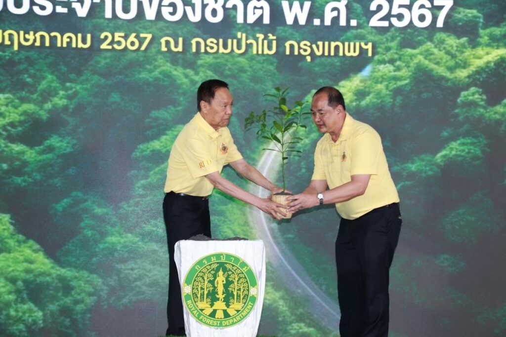 พล.ต.อ.พัชรวาท วงษ์สุวรรณ รองนายกรัฐมนตรี และรัฐมนตรีว่าการกระทรวงทรัพยากรธรรมชาติและสิ่งแวดล้อม เป็นประธานในพิธีงานวันต้นไม้ประจำปีของชาติ พ.ศ. ๒๕๖๗ พร้อมด้วยผู้บริหาร ทส. นายสุรชัย อจลบุญ อธิบดีกรมป่าไม้ นายสุพจน์ ภู่รัตนโอภา รองอธิบดีกรมป่าไม้ นายอนันต์ ปิ่นน้อย ผู้อำนวยการสำนักส่งเสริมการปลูกป่า นายวรุตม์ ศิริกิม ผู้อำนวยการส่วนผลิตกล้าไม้ และเจ้าหน้าที่สำนักส่งเสริมการปลูกป่า เข้าร่วมพิธี