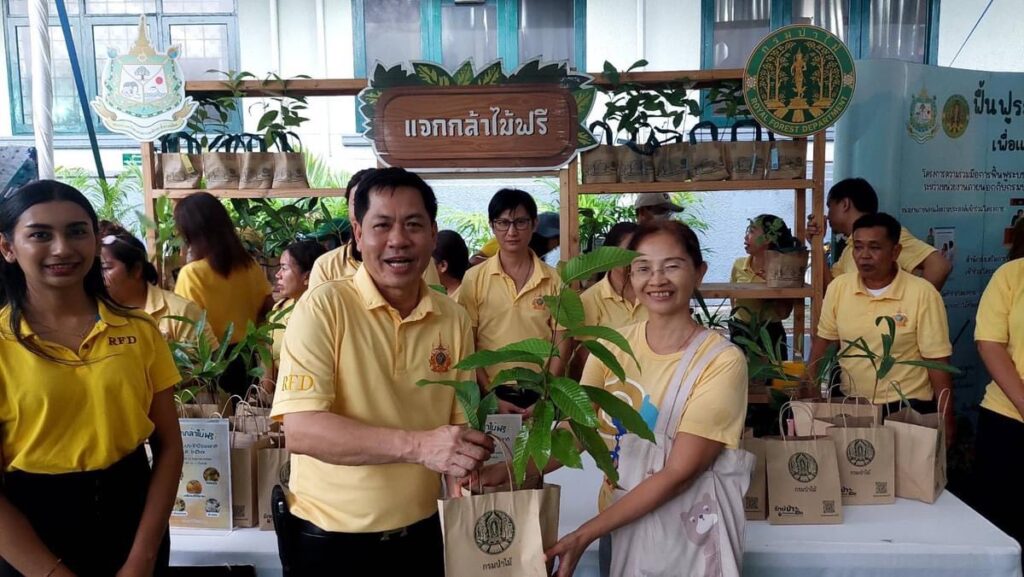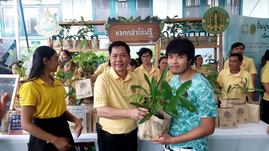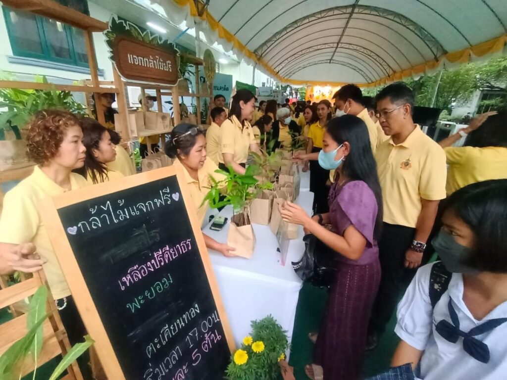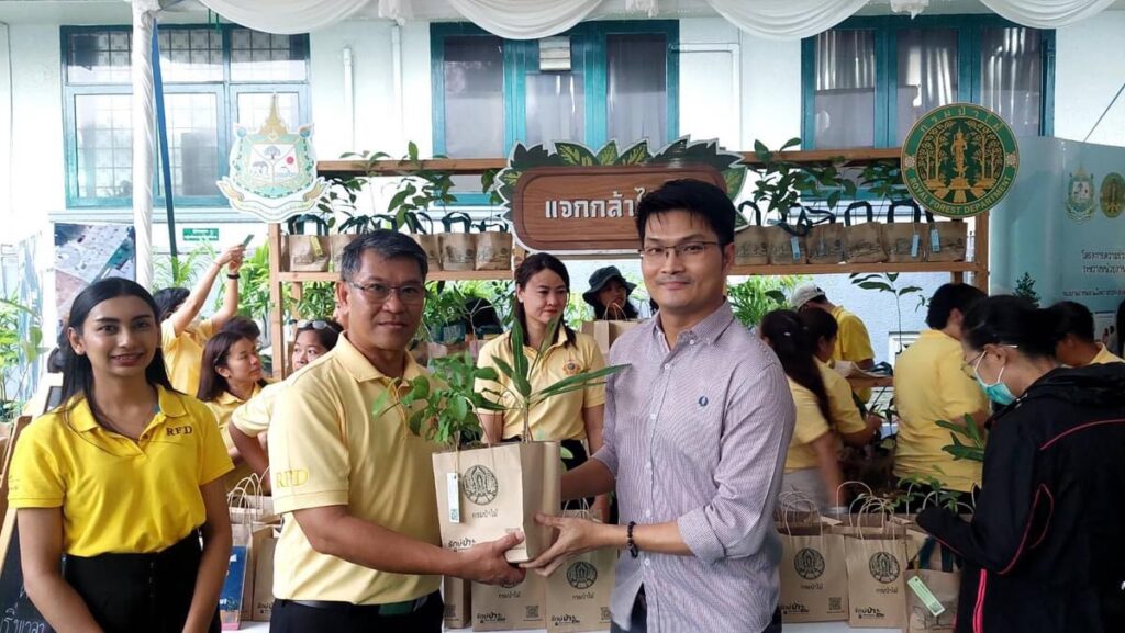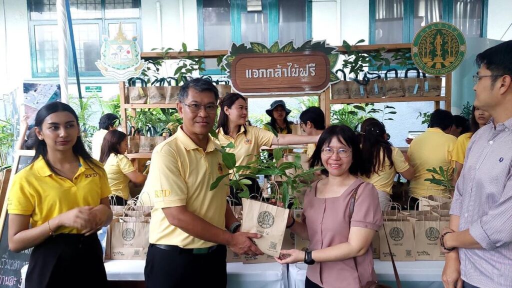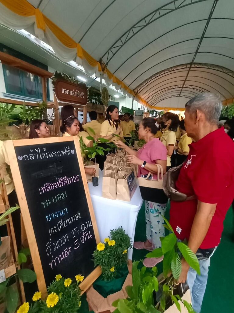 ในการนี้ส่วนผลิตกล้าไม้ได้นำกล้าไม้มาแจกจ่ายให้กับผู้ร่วมงาน ได้แก่ ตะเคียนทองเหลืองปรีดียาธร ยางนา พะยอม และทองอุไร จำนวน ๗๒๐ ต้น