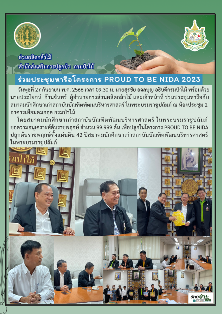 กรมป่าไม้ร่วมประชุมหารือโครงการ PROUD TO BE NIDA 2023 ณ ห้องประชุม2 อาคารเทียมคมกฤส กรมป่าไม้27 กันยายน 2023 by nursery