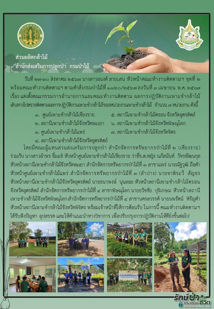 ติดตามผลการปฏิบัติงานเพาะชำกล้าไม้ทัองที่จังหวัดเชียงราย พะเยา แพร่ อุตรดิตถ์ พิษณุโลก และพิจิตร ระหว่างวันที่ ๒๗-๓๐ สิงหาคม ๒๕๖๗2 กันยายน 2024 by nursery สไลด์1_0สไลด์2_0สไลด์3_0สไลด์4_0สไลด์5_0สไลด์6_0สไลด์7_0สไลด์8_0