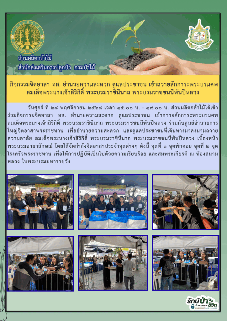 ส่วนผลิตกล้าไม้เข้าร่วมกิจกรรมจิตอาสา ทส. อำนวยความสะดวกดูแลประชาชน เข้าถวายสักการะพระบรมศพ สมเด็จพระนางเจ้าสิริกิติ์ พระบรมราชินีนาถ พระบรมราชชนนีพันปีหลวง1 ธันวาคม 2025 by nursery