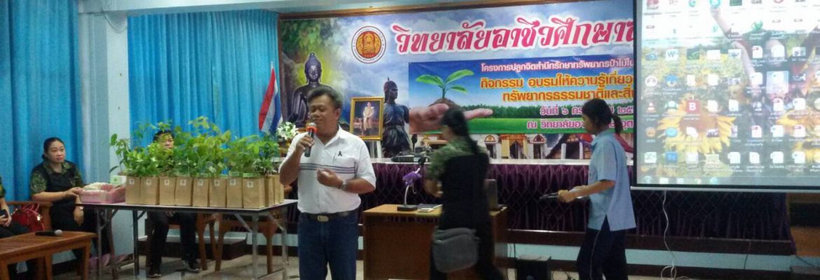 วันที่ 6 ก.ค.60 เวลา 13.00-15.00 น. นายชาติระวี สัญจร เจ้าพนักงานป่าไม้ชำนาญงาน ทำหน้าทีหัวหน้าสถานีเพาะชำกล้าไม้จังหวัดอุตรดิตถ์ พร้อมเจ้าหน้าที่ ร่วมกับฝ่ายบริหารทั่วไปศูนย์ป่าไม้จังหวัดอุตรดิตถ์ จัดกิจกรรมอบรมให้ความรู้ ทฤษฎี แนวคิด และหลักการปฏิบัติเกี่ยวกับการอนุรักษ์ทรัพยากรธรรมชาติและสิ่งแวดล้อม พร้อมทั้งนำเอาเคล็ดลับการปฎิบัติต่อเมล็ดไม้เพื่อเร่งการงอก ถาม-ตอบคำถามชิงรางวัล ให้แก่ นักศึกษา จำนวน 200 คน พร้อมมอบกล้าไม้ ติด QR-Code จำนวน28 ชนิดๆละ 2 ต้น ให้กับทางวิทยาลัยฯ ณ ห้องประชุมวิทยาลัยอาชีวศึกษาอุตรดิตถ์