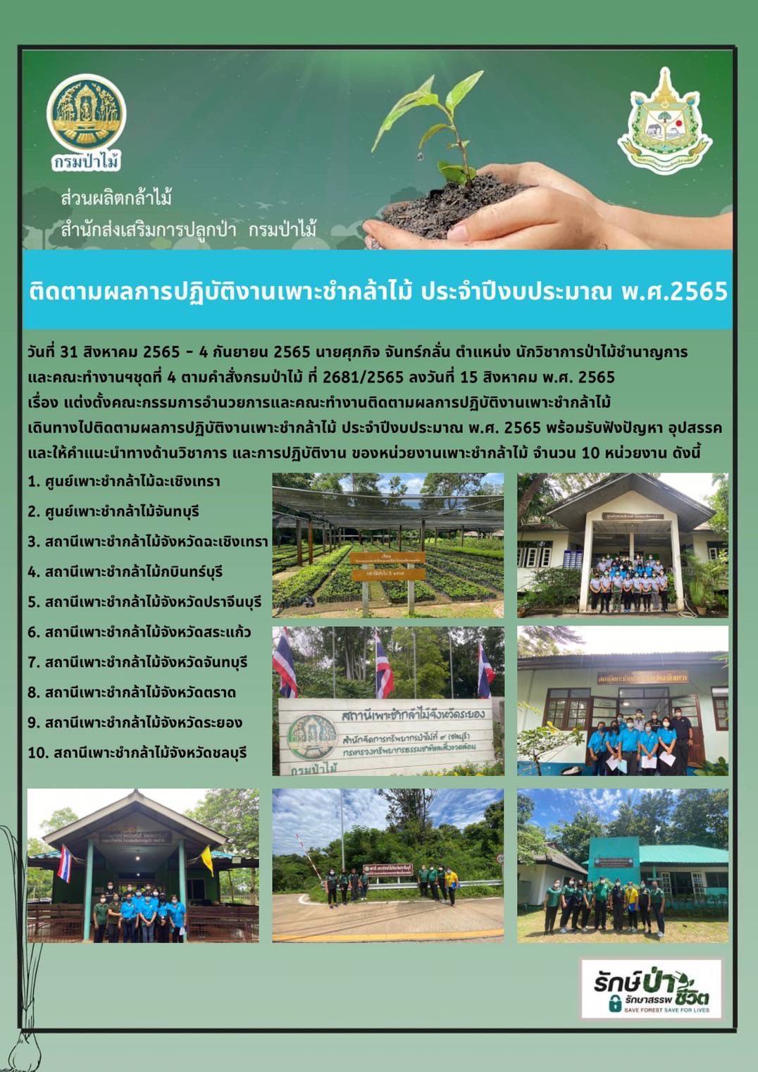 ติดตามผลการปฏิบัติงานเพาะชำกล้าไม้ ประจำปีงบประมาณ พ.ศ.2565 ท้องที่จังหวัดฉะเชิงเทรา ปราจีนบุรี สระแก้ว จันทบุรี ตราด ระยอง ชลบุรี ระหว่างวันที่ ๓๑ สิงหาคม – ๔ กันยายน ๒๕๖๕9 กันยายน 2022 by nursery Team4-1 (1)Team4-1 (2)Team4-1 (3)Team4-1 (4)Team4-1 (5)Team4-1 (6)Team4-1 (7)Team4-1 (8)Team4-1 (9)Team4-1 (10)Team4-1 (11)