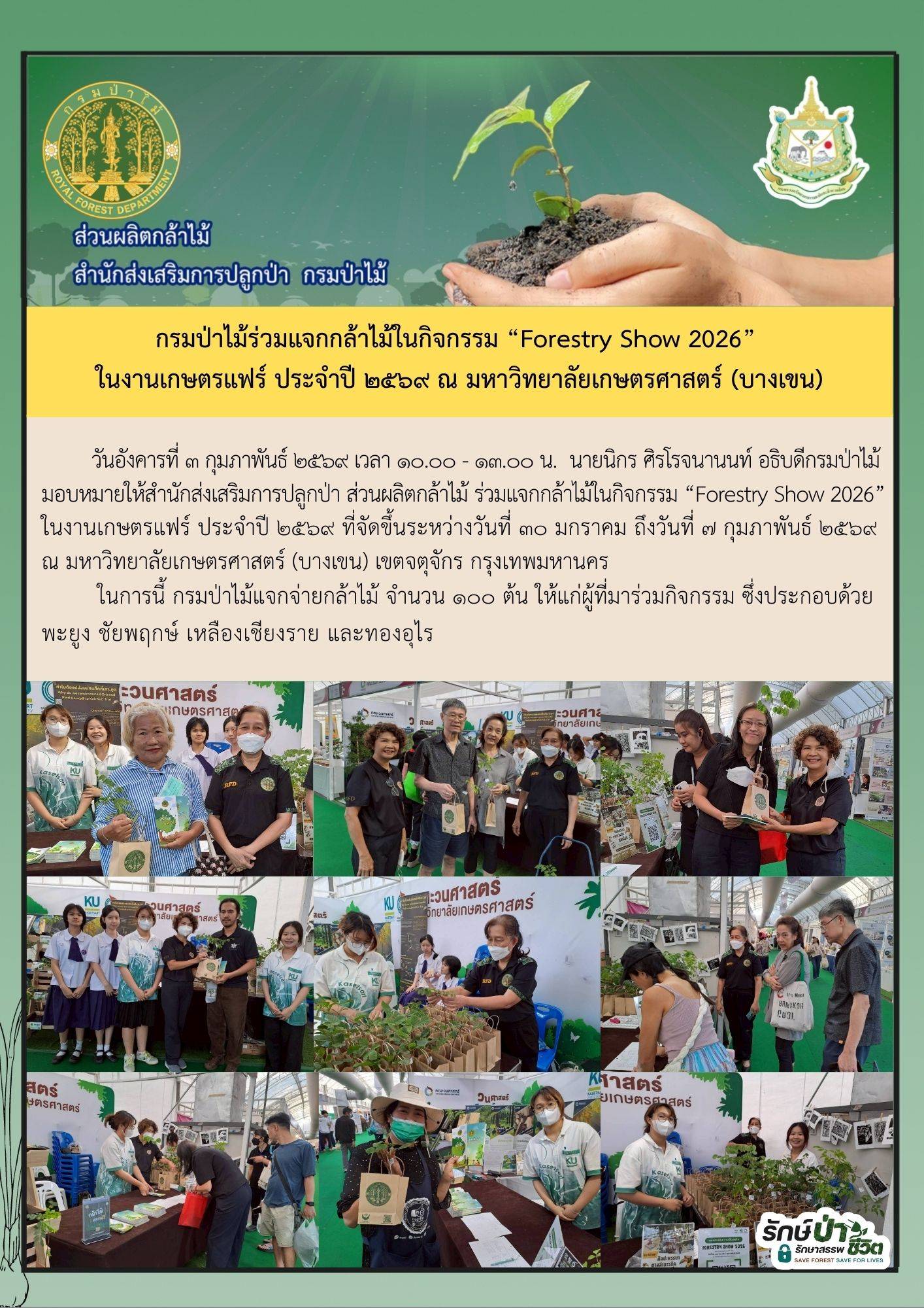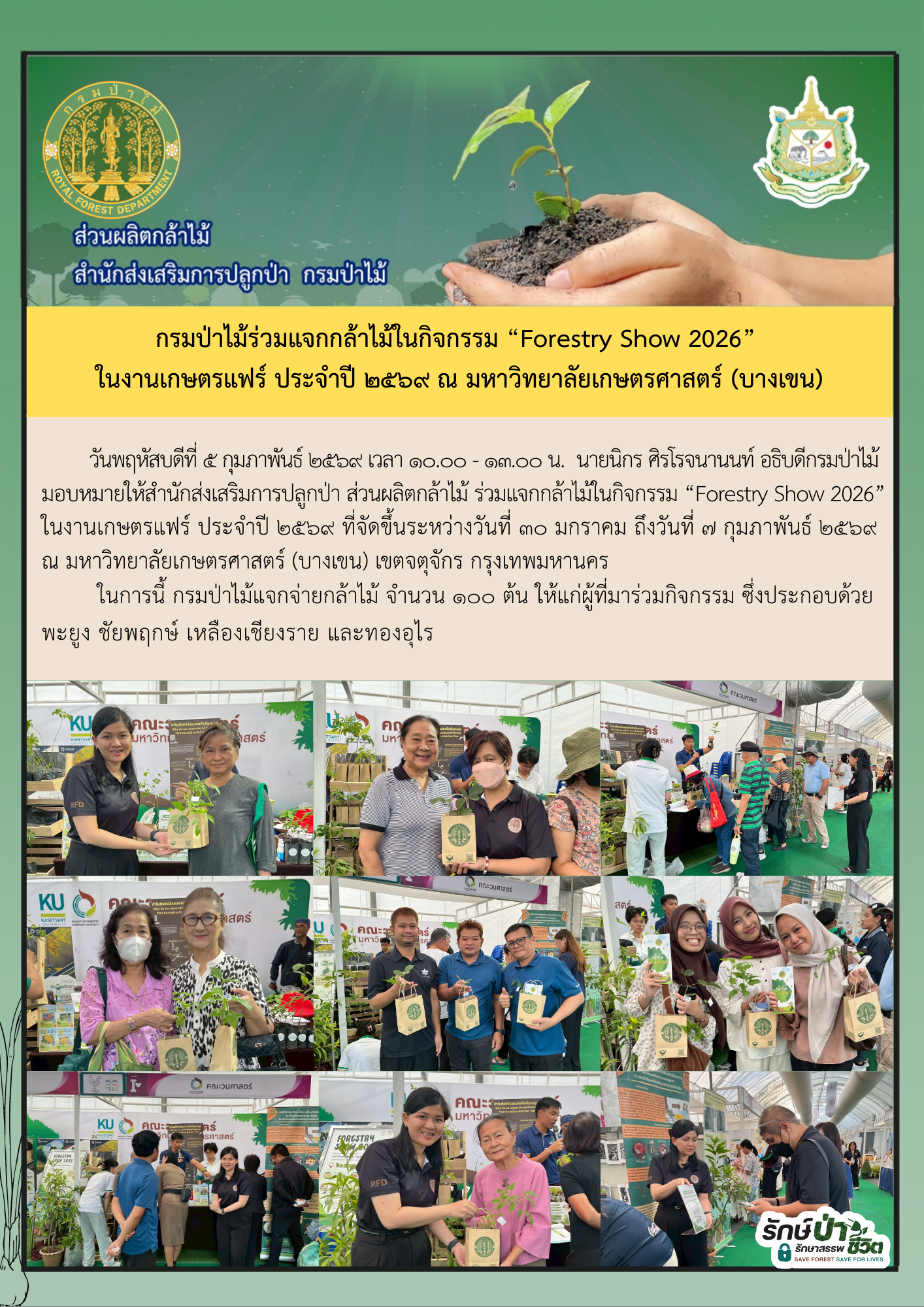 กรมป่าไม้ร่วมแจกกล้าไม้กิจกรรม “Forestry Show ๒๐๒๖” ในงานเกษตรแฟร์ ประจำปี ๒๕๖๙ ณ มหาวิทยาลัยเกษตรศาสตร์ (บางเขน) กรุงเทพฯ ระหว่างวันที่ ๓๑ มกราคม – ๗ กุมภาพันธ์ ๒๕๖๙6 กุมภาพันธ์ 2026 by nursery 300169020269030269040269050269menu