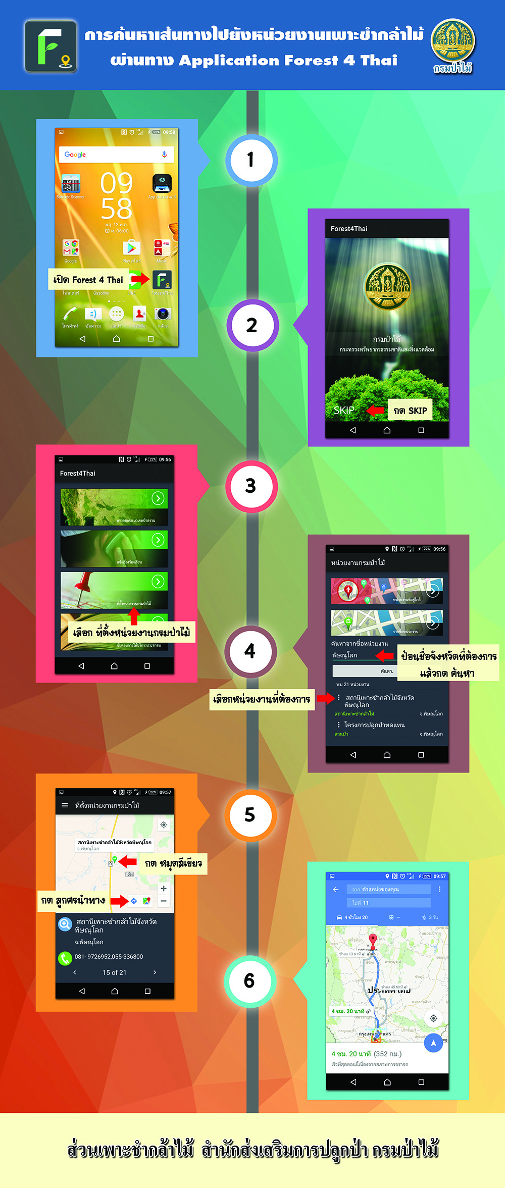 การค้นหาเส้นทางไปยังหน่วยงานเพาะชำกล้าไม้ผ่านทาง Application Forest 4 Thai