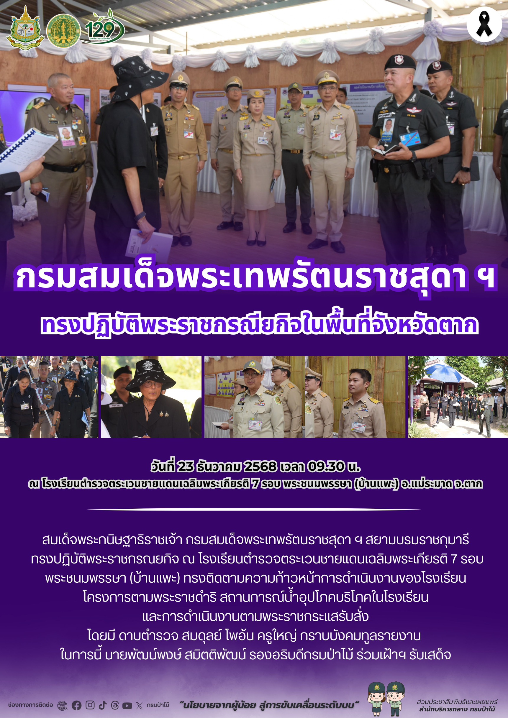 สมเด็จพระกนิษฐาธิราชเจ้า กรมสมเด็จพระเทพรัตนราชสุดา ฯ สยามบรมราชกุมารี เสด็จพระราชดำเนินทรงปฏิบัติพระราชกรณียกิจ ในพื้นที่จ.ตาก