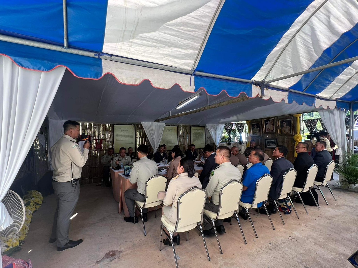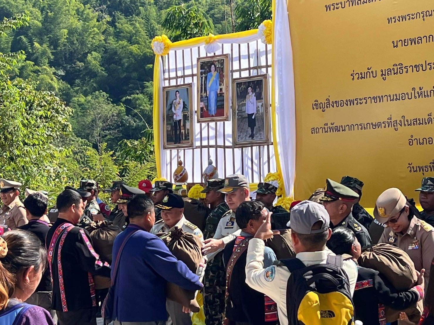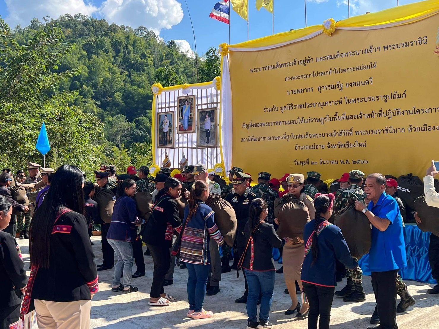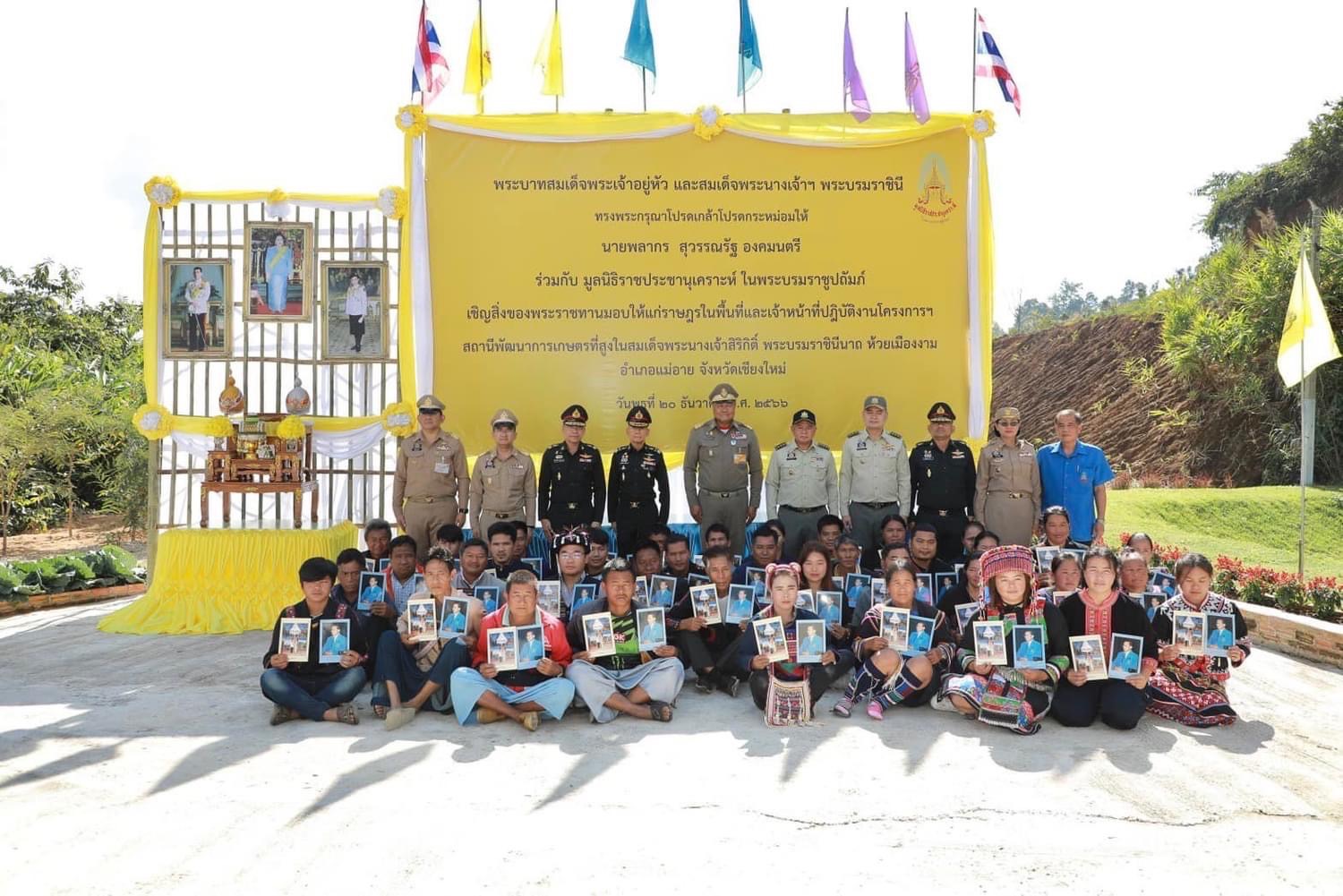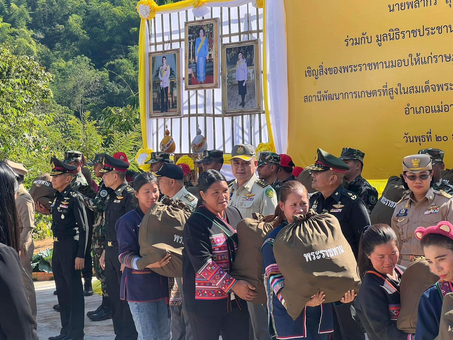 นายพลากร สุวรรณรัฐ องคมนตรี ประธานอนุกรรมการติดตามและขับเคลื่อนโครงการ อันเนื่องมาจากพระราชดำริพื้นที่ภาคเหนือ พร้อมด้วยคณะอนุกรรมการฯ ผู้บริหารและเจ้าหน้าที่หน่วยงาน ที่เกี่ยวข้อง ลงพื้นที่ติดตามการดำเนินงานโครงการอันเนื่องมาจากพระราชดำริ ณ พื้นที่โครงการสถานีพัฒนา การเกษตรที่สูงในสมเด็จพระนางเจ้าสิริกิติ์ พระบรมราชินีนาถ ห้วยเมืองงาม ตำบลท่าตอน อำเภอแม่อาย จังหวัดเชียงใหม่ เพื่อมอบเสื้อกันหนาวเด็กและถุงพระราชทานให้แก่ราษฎรและผู้ปฏิบัติงานในพื้นที่ พร้อมรับฟัง การบรรยายสรุปและเยี่ยมชมผลการดำเนินงานโครงการฯ