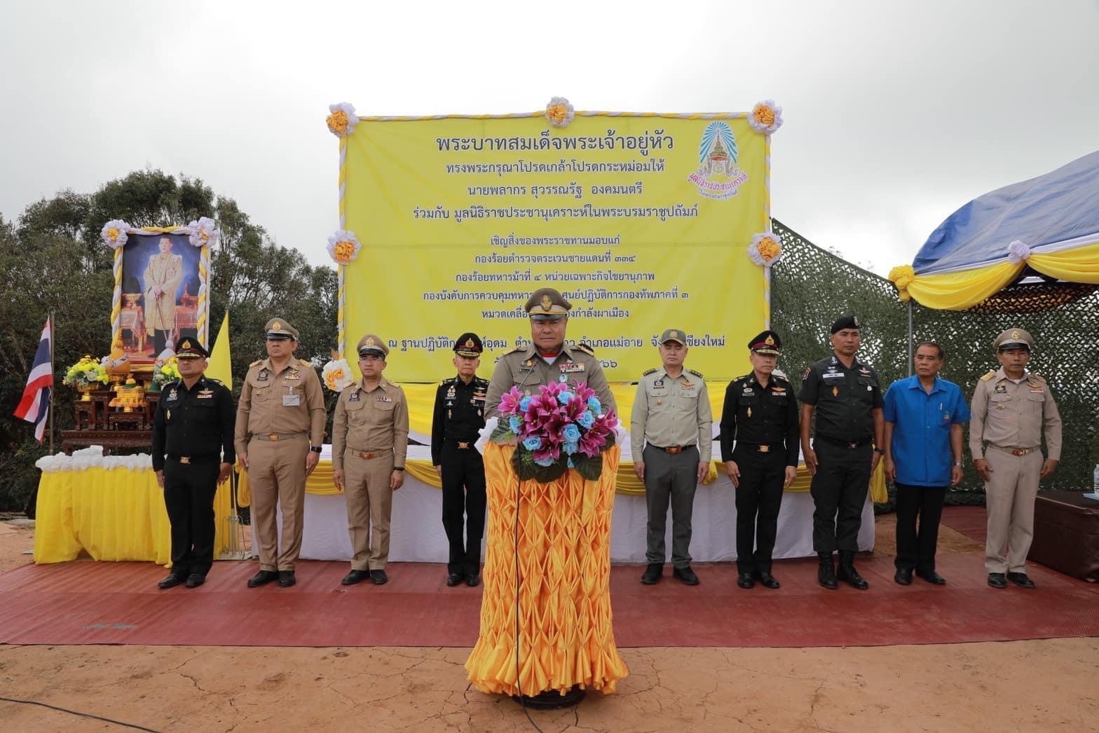 ช่วงบ่าย เดินทางไปยังฐานปฏิบัติการสิงห์อุดม ดอยผ้าห่มปก ตำบลแม่สาว อำเภอแม่อาย จังหวัดเชียงใหม่ เพื่อมอบถุงพระราชทานให้แก่ผู้ปฏิบัติงานในพื้นที่และรับฟังบรรยายสรุปเกี่ยวกับงานด้านความมั่นคงในพื้นที่ฯ
