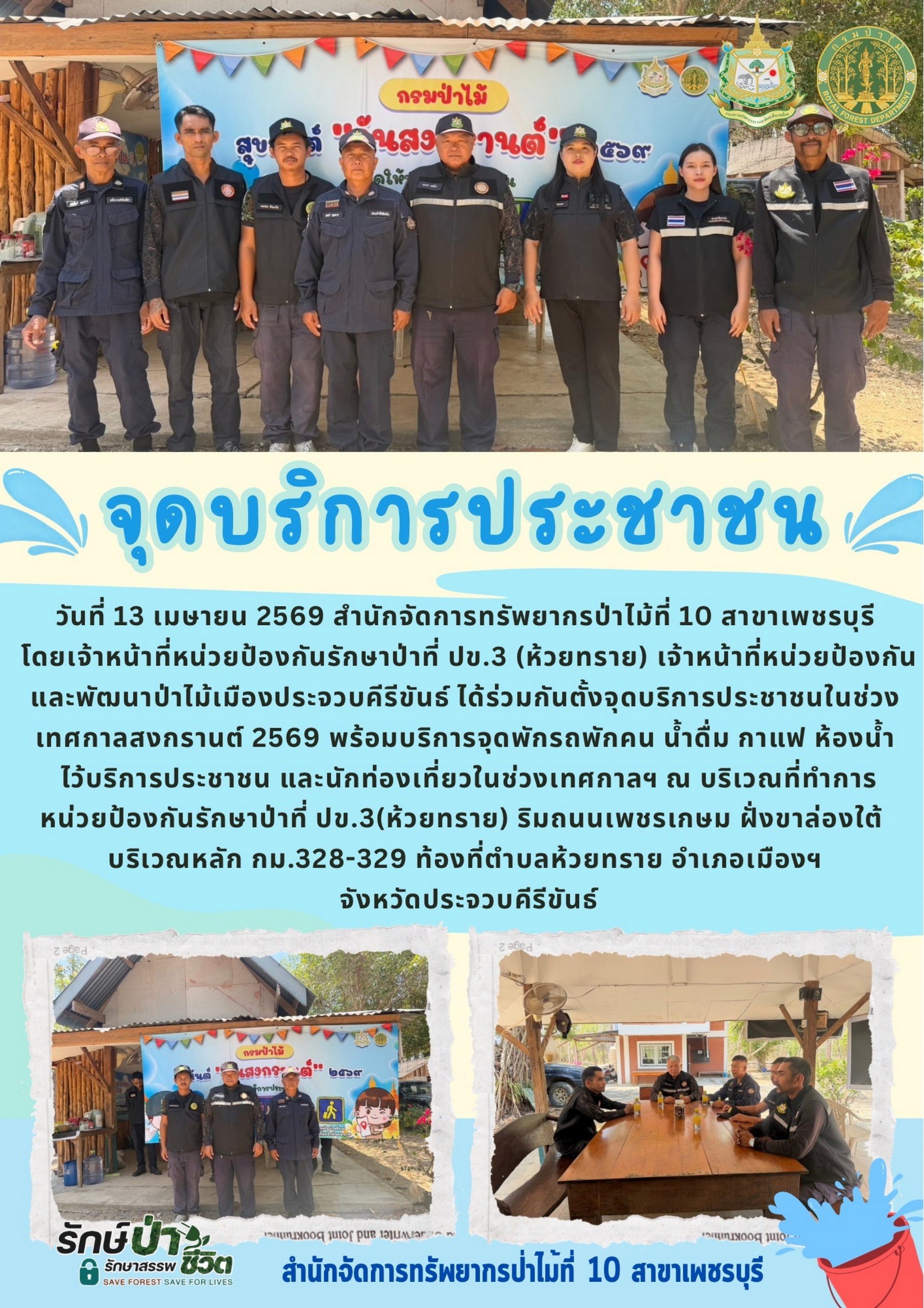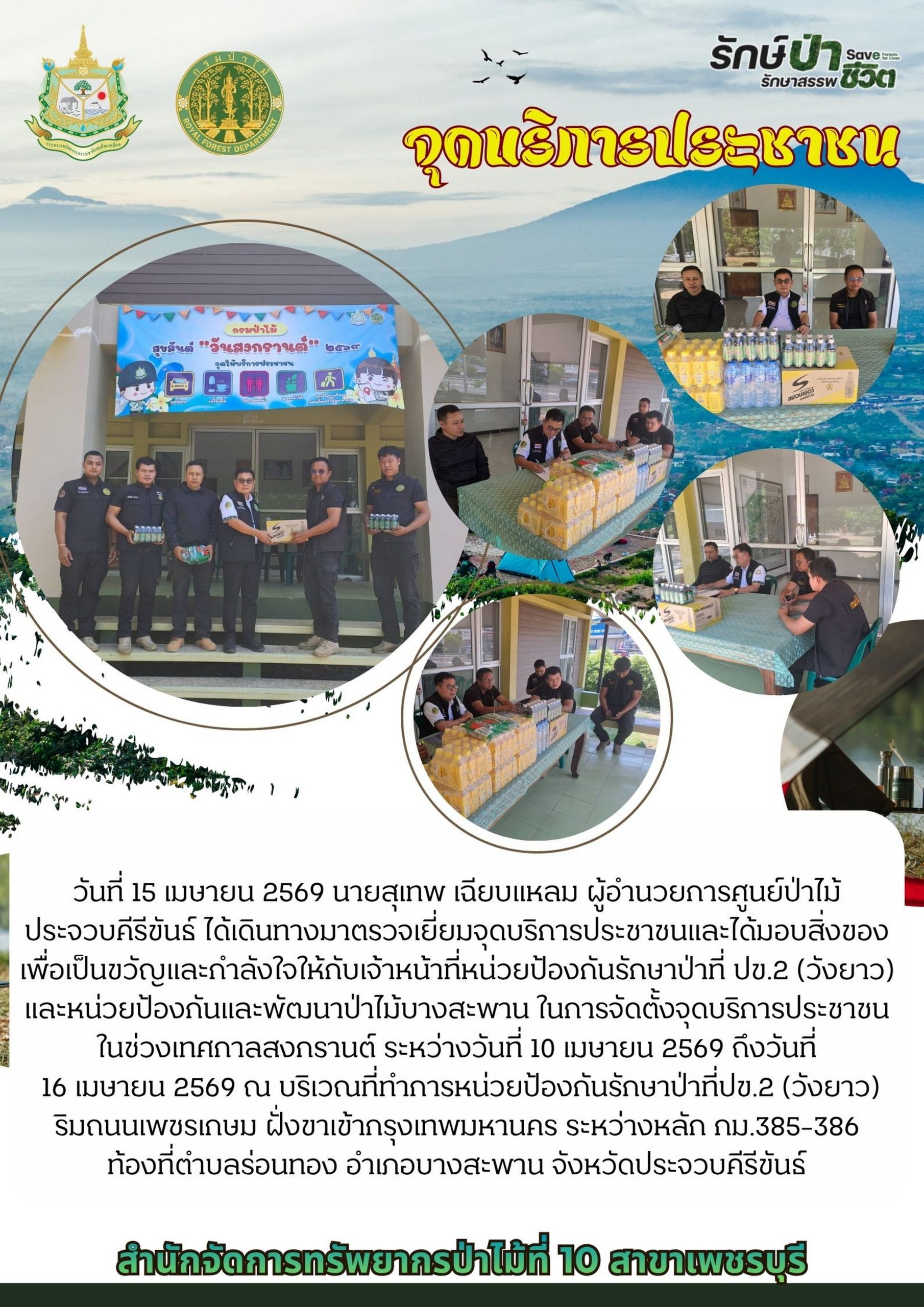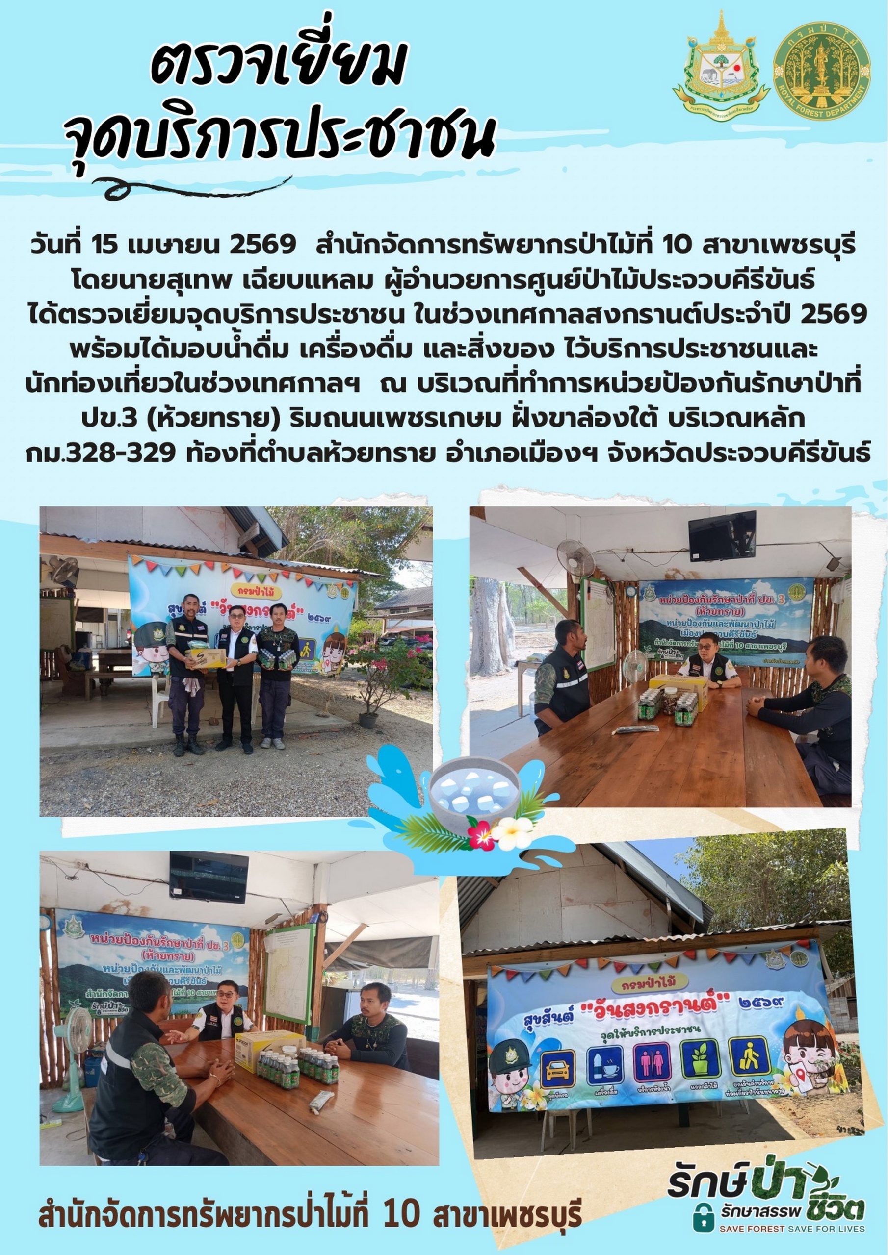 ประกาศผู้ชนะการเสนอราคา จ้างเหมาลาดตระเวนตรวจป่า ในพื้นที่ป่าชุมชนบ้านม้าร้อง หมู่ที่ 4 ต.พงศ์ประศาสน์ อ.บางสะพาน จ.ประจวบคีรีขันธ์ เนื้อที่ 568 ไร่ จำนวน 10 ครั้ง โดยวิธีเฉพาะเจาะจง