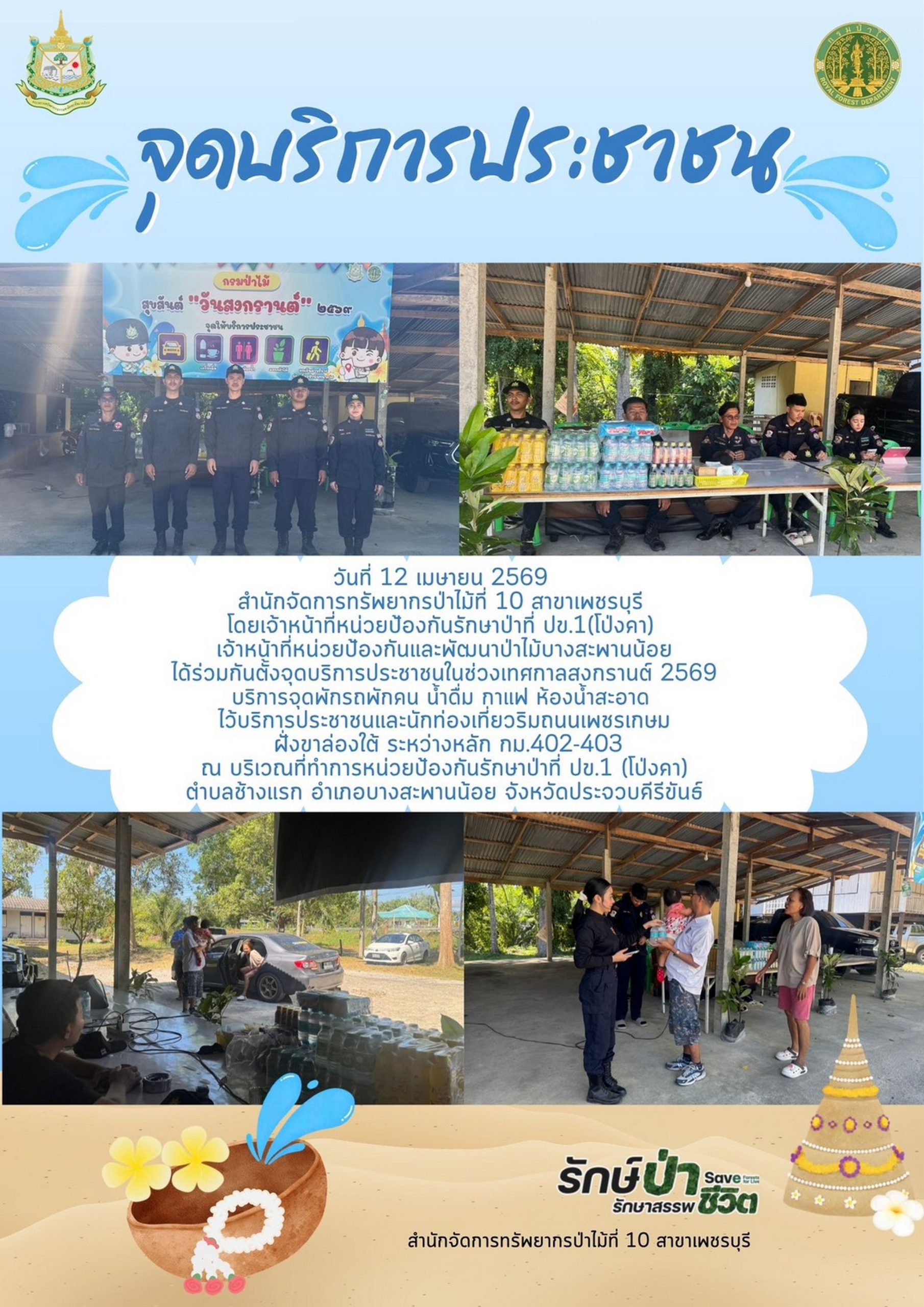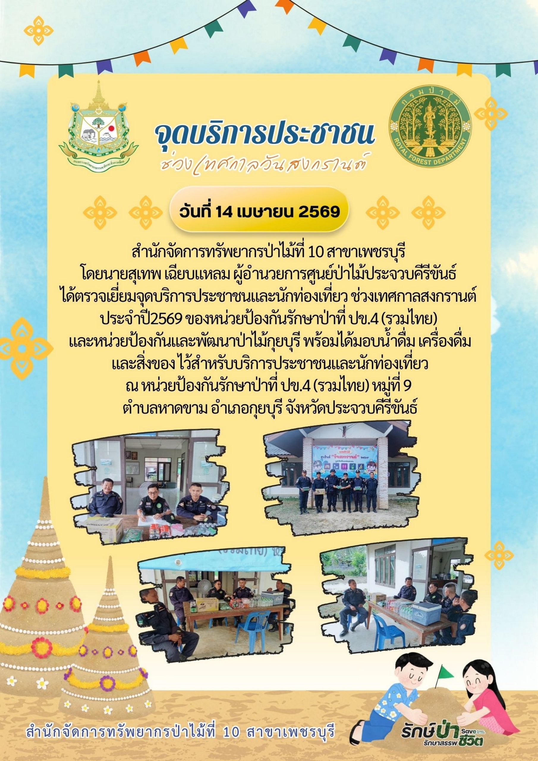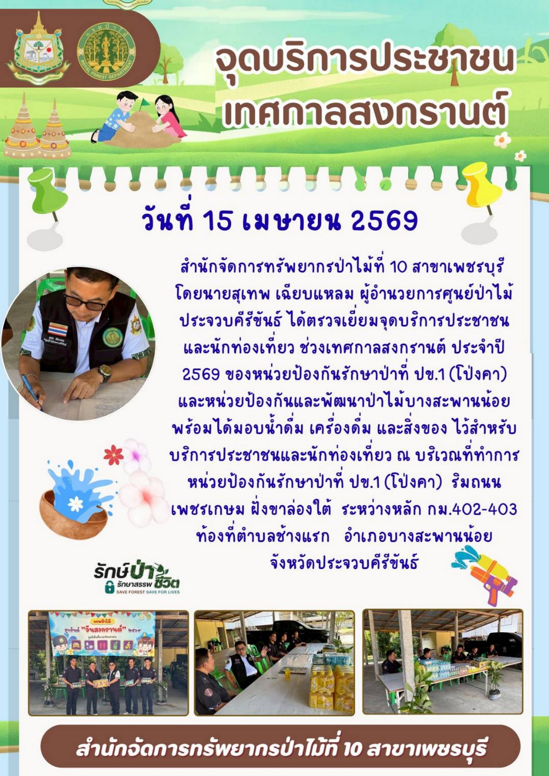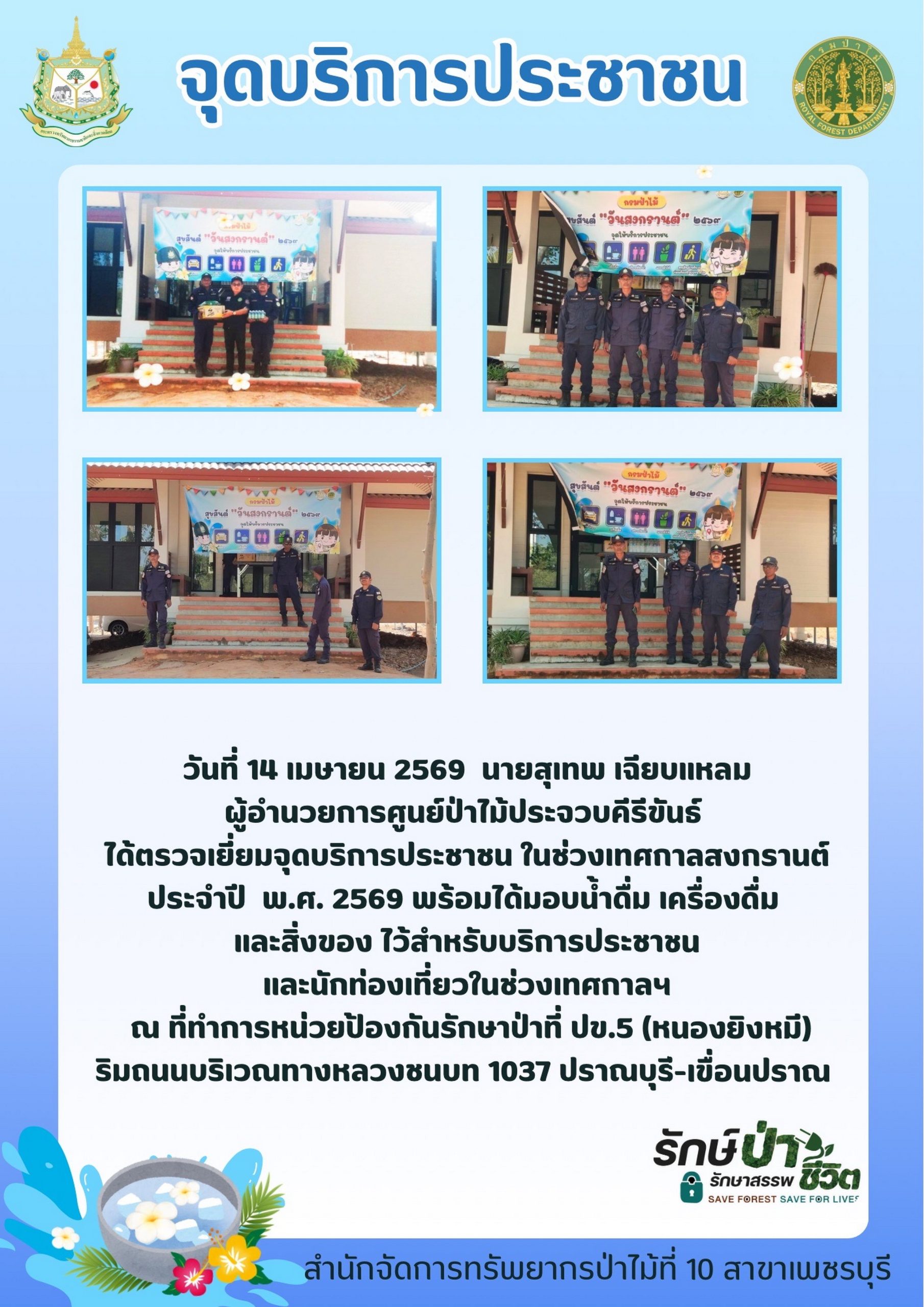ประกาศผู้ชนะการเสนอราคา จ้างเหมาลาดตระเวนตรวจป่า ในพื้นที่ป่าชุมชนบ้านม้าร้อง หมู่ที่ 4 ต.พงศ์ประศาสน์ อ.บางสะพาน จ.ประจวบคีรีขันธ์ เนื้อที่ 568 ไร่ จำนวน 10 ครั้ง โดยวิธีเฉพาะเจาะจง