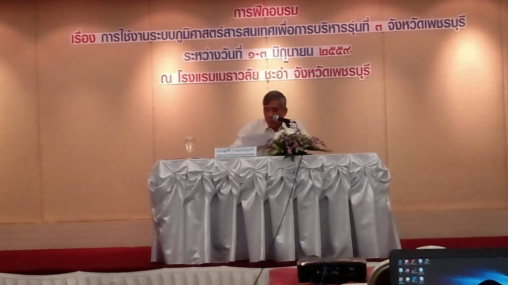 วันที่ 2 มิถุนายน 2559 จนท.สจป.10 สาขาเพชรบุรี ได้เข้าร่วมอบรมระบบภูมิศาสตร์สารสนเทศเพื่อการบริหาร ณ โรงแรมเมธาวลัย อ.ชะอำ จ.เพชรบุรี โดยมี ผอ.สจป.10 สาขาเพชรบุรี เป็นผู้กล่าวต้อนรับ และมี ผอ.สำนักแผนฯ เป็นประธานพิธีเปิดแทน อธิบดีกรมป่าไม้