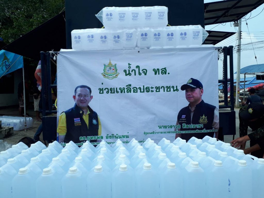 นายชาตรี วชิระเผด็จศึก ผอ.สจป.ที่ 10 สาขาเพชรบุรี พร้อมด้วยผู้อำนวยการส่วน หัวหน้าหน่วยงานภาคสนามจังหวัดเพชรบุรีและจังหวัดประจวบคีรีขันธ์ ให้การต้อนรับ ดร.ยุทธพล อังกินันทน์ ที่ปรึกษารัฐมนตรีว่าการกระทรวงทรัพยากรธรรมชาติและสิ่งแวดล้อม ในการลงพื้นที่ตรวจเยี่ยม และแจกจ่ายน้ำดื่ม โดยได้รับความร่วมมือจากกรมทรัพยากรน้ำบาดาล ให้แก่ผู้ประสบภัยท้องที่ ต.บ้านกุ่ม อ.เมือง จ.เพชรบุรี ชุมชนบ้านบางลำภู ต.บางครก อ.บ้านแหลม จ.เพชรบุรี