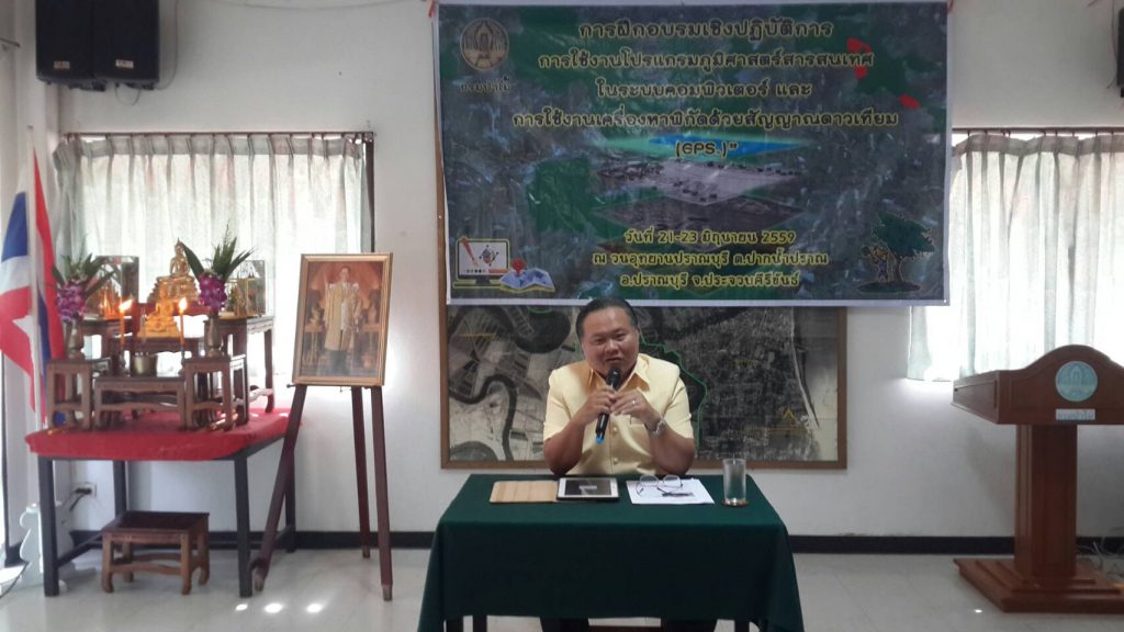 วันที่ 21-23 มิ.ย.59 ฝ่ายสารสนเทศ สำนักฯ 10 สาขาเพชรบุรี จัดฝึกอบรมเชิงปฏิบัติการ การใช้งานโปรแกรมภูมิศาสตร์สารสนเทศในระบบคอมพิวเตอร์ และการใช้งานเครื่องหาค่าพิกัดด้วยสัญญาณดาวเทียม (GPS.) ณ วนอุทยานปราณบุรี ตำบลปากน้ำปราณ อำเภอปราณบุรี จังหวัดประจวบคีรีขันธ์ โดยมีนายปรีชา แสงเทียน ผอ.สจป.ที่ 10 สาขาเพชรบุรี เป็นประธาน