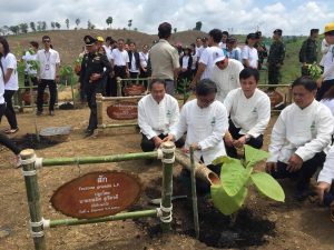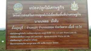 เวลา 13.00 น. ปลัดกระทรวงทรัพยากรธรรมชาติและสิ่งแวดล้อม พร้อมด้วย นายชลธิศ สุรัสวดี อธิบดีกรมป่าไม้ นายประลอง ดำรงค์ไทย ผู้ตรวจราชการกระทรวงทรัพยากรธรรมชาติและสิ่งแวดล้อม และคณะ ได้เดินทางไปยังหมู่ที่ 1 ตำบลแม่กุ อำเภอแม่สอด จังหวัดตาก เพื่อเยี่ยมชมแปลงปลูกไม้เศรษฐกิจ โครงการส่งเสริมการปลูกต้นไม้เพื่อเพิ่มพื้นที่ป่าเศรษฐกิจ ของนายนพดล มั่งตั๋น เกษตรกรผู้ที่เข้าร่วมโครงการปลูกไม้ผสมผสานดังกล่าว อันเป็นโครงการร่วมมือระหว่างกรมป่าไม้กับชุมชน ด้วยการปลูกไม้เศรษฐกิจโตเร็ว (อายุ 3-5 ปี ก็ตัดขายได้ รวมทั้งพืชพลังงานชีวมวลที่มีโรงไฟฟ้าในพื้นที่อยู่แล้ว) เช่น กระถินณรงค์ลูกผสม ยูคาลิปตัส พืชเศรษฐกิจ เช่น กล้วยน้ำว้า ไผ่กิมซุ่ง พืชอาหารและสมุนไพร เช่น มะกรูด ชะอม พริก อันเป็นการใช้ประโยชน์จากทรัพยากรธรรมชาติควบคู่กันไปกับการอนุรักษ์ทรัพยากรธรรมชาติอย่างยั่งยืนซึ่งได้รับผลสำเร็จจากการปฏิบัติตามนโยบายเป็นอย่างดี โดยนายนพดลฯ มีความมุ่งมั่นตั้งใจว่า พื้นที่ดังกล่าวจะอุทิศให้เป็นศูนย์การเรียนรู้ แปลงเกษตรสาธิต เพื่อให้ชุมชนบริเวณโดยรอบได้ทดลองปฏิบัติจริง และนำความรู้ที่ได้ขยายสู่วงกว้างต่อไป ในการนี้ ปลัดกระทรวงทรัพยากรธรรมชาติและสิ่งแวดล้อม และคณะ ได้ปลูกต้นกระถินณรงค์ลูกผสมลงในพื้นที่แปลงเกษตรของนายนพดลฯ ร่วมกับผู้ใหญ่บ้าน กำนัน และชาวบ้านจากตำบลแม่กุวง ด้วย