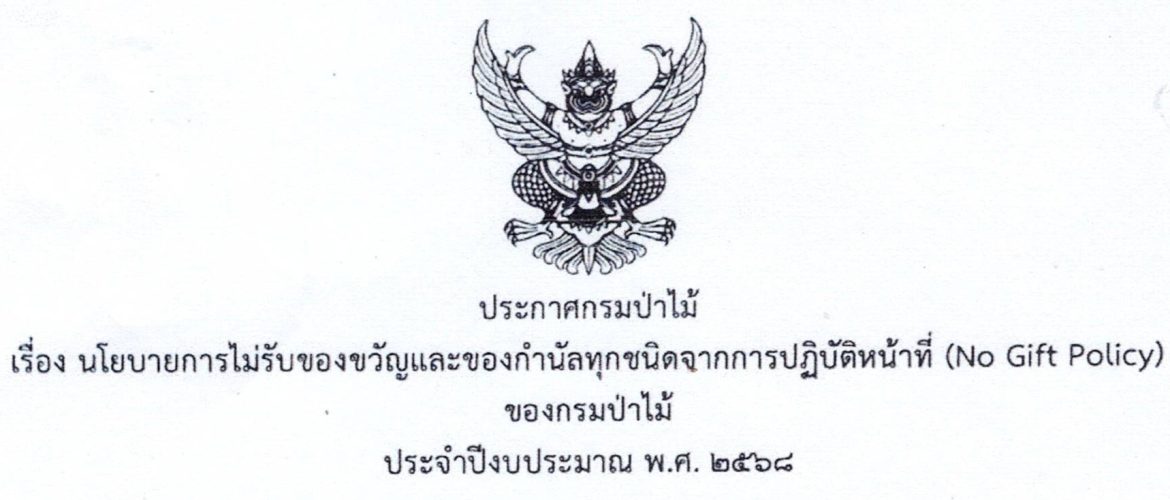 ประกาศกรมป่าไม้ เรื่อง นโยบายไม่รับของขวัญและของกำนัลทุกชนิดจากการปฏิบัติหน้าที่ (No Gift Policy) ของกรมป่าไม้ ประจำปีงบประมาณ พ.ศ.2568รายการนี้ถูกเผยแพร่ใน ข่าว ประกาศ on 18 สิงหาคม 2025 by joon Post Views: 80