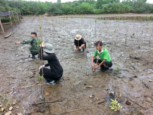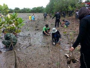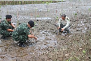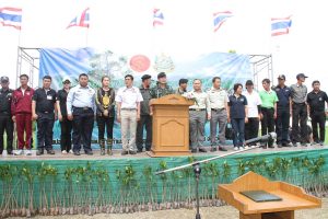 วันที่ ๗ ส.ค.๒๕๖๐ เวลา ๐๙.๐๐ น. สำนักจัดการทรัพยากรป่าไม้ที่ ๑๐ สาขาเพชรบุรี นำโดย นายปรีชา แสงเทียน ผู้อำนวยการสำนักฯ นายอัครชัย เสรีลัดดานนท์ ผู้อำนวยการส่วนป้องกันรักษาป่าและควบคุมไฟป่า นายประชัย อุดมทิพยสมบัติ ป่าไม้จังหวัดประจวบคีรีขันธ์ พร้อมด้วย เจ้าหน้าที่สำนักฯ และเจ้าหน้าที่ศูนย์ป่าไม้จังหวัดประจวบฯ ไปร่วมกิจกรรม “โครงการประชารัฐร่วมใจ ปลูกต้นไม้ให้แผ่นดิน” เพื่อเฉลิมพระเกียรติสมเด็จพระเจ้าอยู่หัว เนื่องในโอกาสวันเฉลิมพระชนมพรรษา ๖๕ พรรษา ๒๘ กรกฎาคม ๒๕๖๐ และร่วมกันสืบสานแนวพระราชดำริพระบาทสมเด็จพระปรมินทรมหาภูมิพลอดุลยเดช และสมเด็จพระนางเจ้าสิริกิติ์ พระบรมราชินีนาถในรัชกาลที่ ๙ ณ แปลงปลูกป่าชายเลน บ้านท่ามะนาว หมู่ที่ ๒ ตำบลแม่รำพีง อำเภอบางสะพาน จังหวัดประจวบคีรีขันธ์ โดยมี นายสวง สุดประเสริฐ ผอ.สนง.ทสจ.ปข. เป็นผู้กล่าวรายงาน และ พ.อ.กรกานต์ นาเวชวานิชกุล รอง ผอ.รมน.จว.ปข. เป็นประธานในพิธี