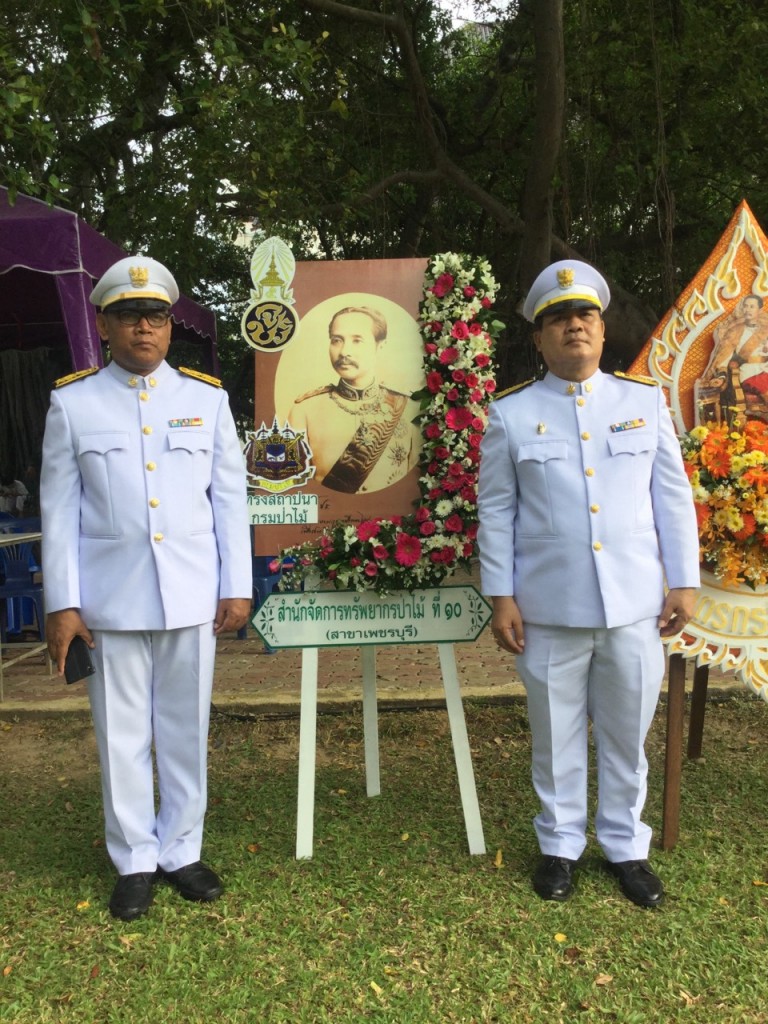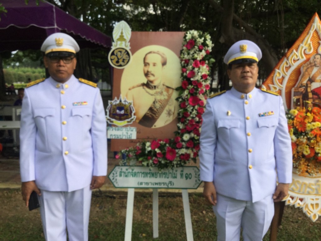วันที่ (๒๓ ตุลาคม ๒๕๕๘) เวลา ๐๗.๐๐ น. สำนักจัดการทรัพยากรป่าไม้ที่ ๑๐ สาขาเพชรบุรี โดย ผู้อำนวยการส่งเสริมการปลูกป่า (ผู้แทน) พร้อมด้วยเจ้าหน้าที่ ร่วมวางพวงมาลา เนื่องในวันปิยมหาราช (๒๓ ตุลาคม) ณ มณฑลพิธี พระรามราชนิเวศน์ มณฑลทหารบก ที่ ๑๕ อำเภอเมือง จังหวัดเพชรบุรี