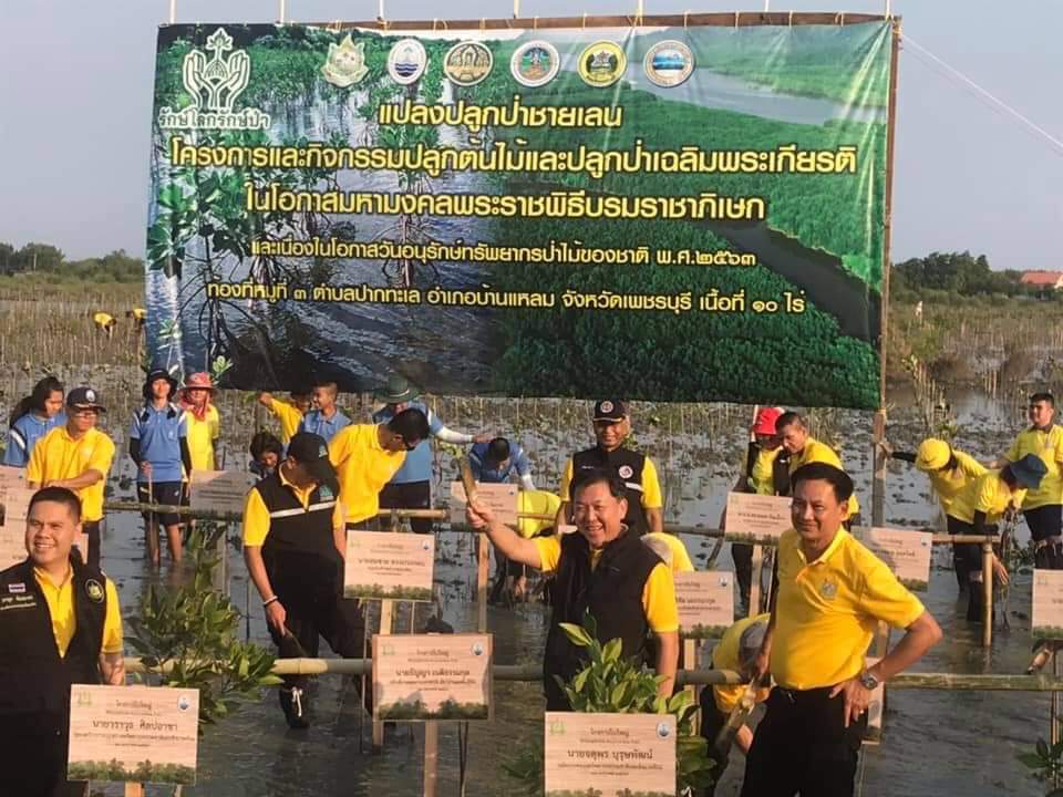 วันที่ 13 ม.ค. 2563 ดร.ยุทธพล อังกินันทน์ ที่ปรึกษารัฐมนตรีว่าการกระทรวงทรัพยากรธรรมชาติและสิ่งแวดล้อม, นายจิระศักดิ์ ชูความดี รองอธิบดีกรมป่าไม้, ผู้บริหารกรมป่าไม้, นายชาตรี วชิระเผด็จศึก ผอ.สจป.ที่ 10 สาขาเพชรบุรี พร้อมด้วยเจ้าหน้าที่ ได้ไปร่วมโครงการและกิจกรรมปลูกต้นไม้และปลูกป่าเฉลิมพระเกียรติ เนื่องในโอกาสมหามงคลพระราชพิธีบรมราชาภิเษก และเนื่องในโอกาสวันอนุรักษ์ทรัพยากรป่าไม้ของชาติ พ.ศ. 2563 และร่วมปลูกป่าชายเลน ท้องที่ ม.3 ต.ปากทะเล อ.บ้านแหลม จ.เพชรบุรี โดยมี นายวราวุธ ศิลปอาชา รัฐมนตรีว่าการกระทรวงทรัพยากรธรรมชาติและสิ่งแวดล้อม เป็นประธานในพิธี และได้ร่วมเดินรณรงค์ ด้วยใจ ห่วงใย รักษ์โลก ณ ตลาดเพชรไพบูลย์และวัดพระนอน