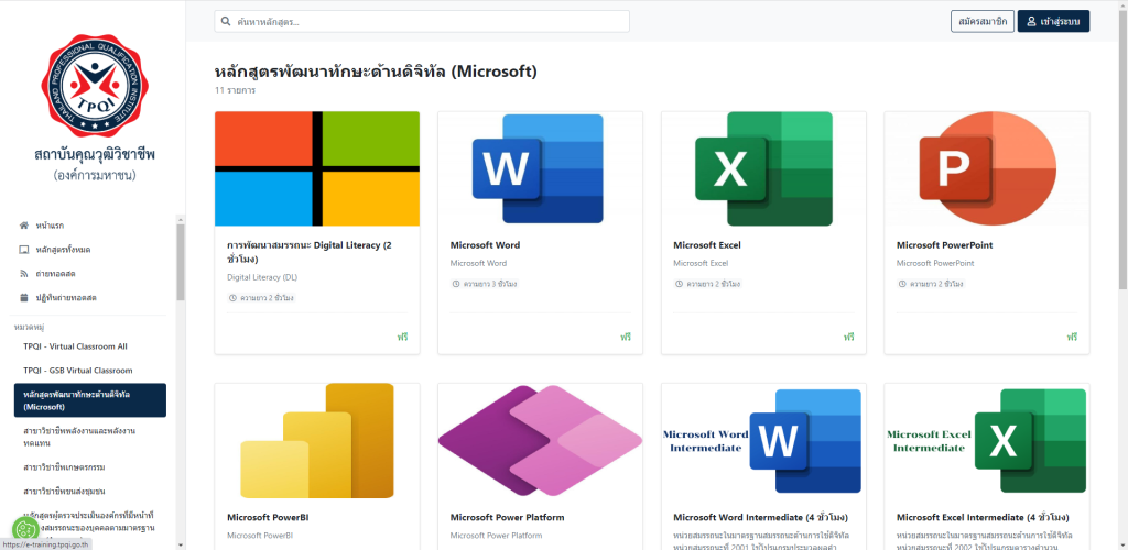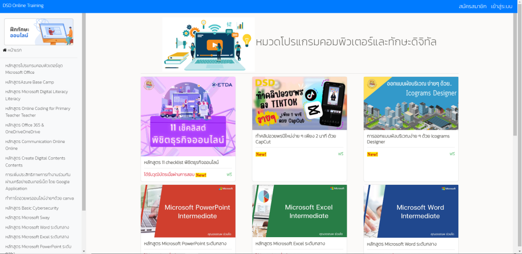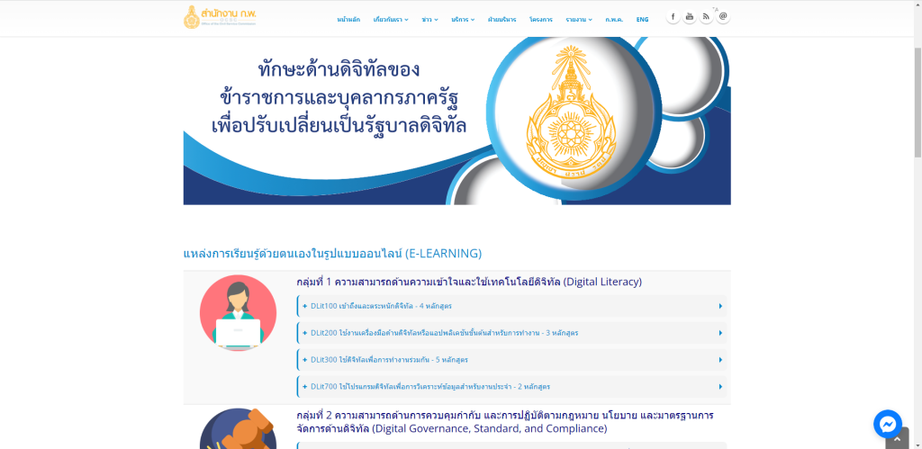 E-LEARNING เสริมทักษะด้านดิจิทัลของข้าราชการ สถาบันพัฒนาบุคลากรภาครัฐด้านดิจิทัลสำนักงานพัฒนารัฐบาลดิจิทัล(องค์การมหาชน) สำนักงาน ก.พ สถาบันคุณวุฒิวิชาชีพ (องค์การมหาชน) สถาบันพัฒนาบุคลากรดิจิทัลกรมพัฒนาฝีมือแรงงาน