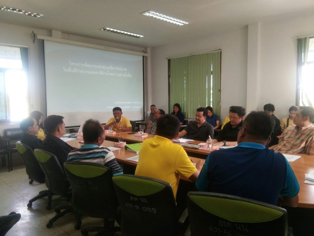 วันที่ (15 พ.ย 62)เวลา 13.00 น.คณะเจ้าหน้าที่หน่วยป้องกันและพัฒนาป่าไม้น้ำหนาว ได้เข้าร่วมประชุมกับผู้นำท้องถิ่น ณ ห้องประชุมองค์การบริหารส่วนตำบลน้ำหนาว เรื่องการมีส่วนร่วมและยอมรับของชุมชนในการจัดทำโครงการพัฒนา แหล่งท่องเที่ยวเชิงอนุรักษ์ในเขตพื้นที่อำเภอน้ำหนาว โดยมีนายภาคภูมิ ภูมี นายอำเภอน้ำหนาว เป็นประธานในที่ประชุมและมีผู้อำนวยการส่วนพัฒนาทรัพยากรป่าไม้ กรมป่าไม้ , ผู้อำนวยการส่วนจัดการป่าไม้ สำนักจัดการทรัพยากรป่าไม้ที่ 4 สาขาพิษณุโลก , สมาชิกสภาองค์การบริหารส่วนจังหวัดเพชรบูรณ์ในเขตพื้นที่อำเภอน้ำหนาว , นายกองค์การบริหารส่วนตำบลน้ำหนาว , ผู้ใหญ่บ้านหมู่ที่ 4 บ้านนาพอสอง , ผู้ใหญ่บ้านหมู่ที่ 5 บ้านนาพอสอง และผู้เกี่ยวข้องเข้าร่วมประชุม สำหรับวันนี้ได้มีคณะอาจารย์จากมหาวิทยาลัยเกษตรศาสตร์ มาสำรวจและจัดเก็บข้อมูลเพื่อร่วมในการออกแบบทำ site plan ในบริเวณรอยเท้าไดโนเสาร์และน้ำตกพรานบา ซึ่งเป็นพื้นที่ในโครงการฯ ที่มีการขออนุญาตใช้พื้นที่ ตามพระราชบัญญัติป่าสงวนแห่งชาติพ.ศ. 2507 มาตรา 19 แล้ว