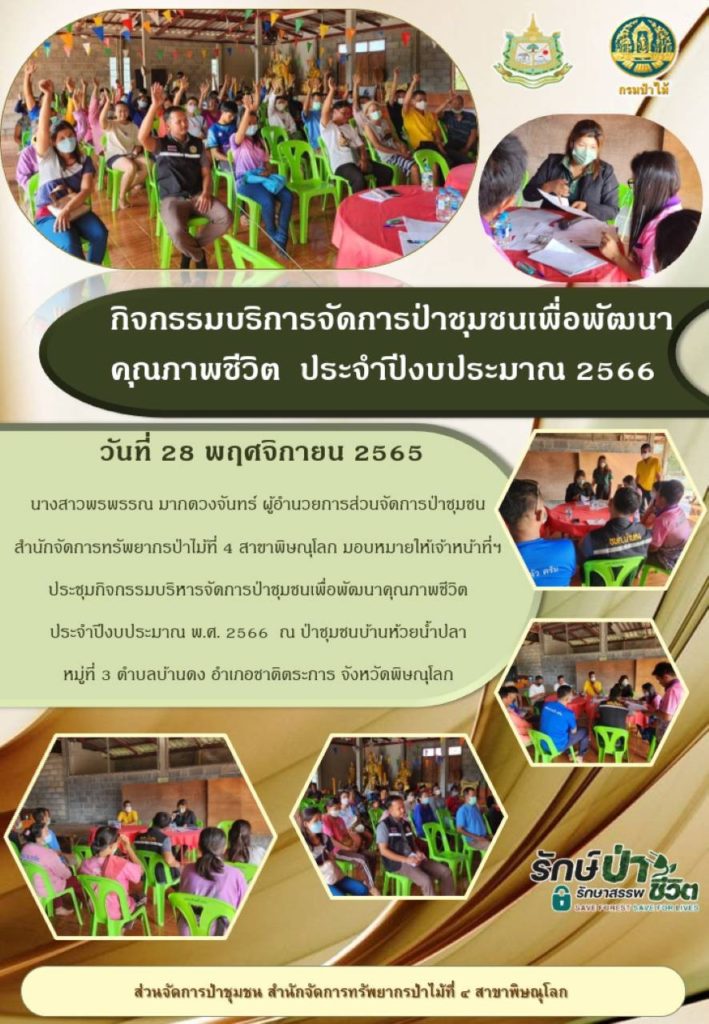 กิจกรรมบริการจัดการป่าชุมชนเพื่อพัฒนาคุณภาพชีวิต ประจำปีงบประมาณ 2566