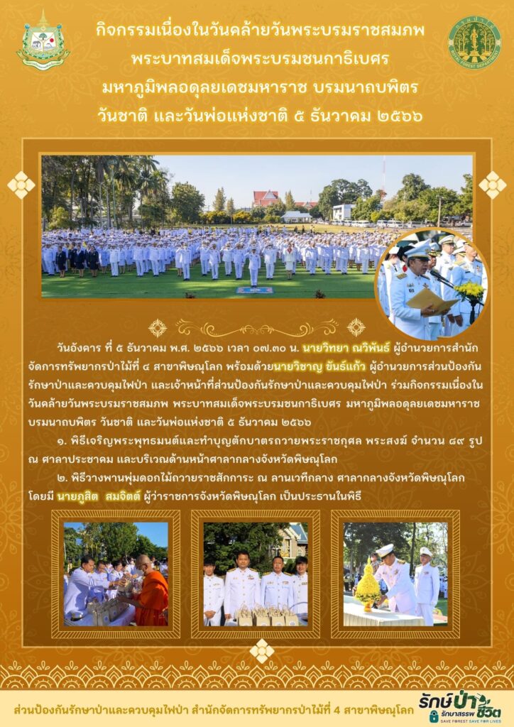 กิจกรรมเนื่องในวันคล้ายวันพระบรมราชสมภพพระบาทสมเด็จพระบรมชนกาธิเบศร มหาภูมิพลอดุลยเดชมหาราช บรมนาถบพิตร วันชาติ และวันพ่อแห่งชาติ 5 ธันวาคม 2566