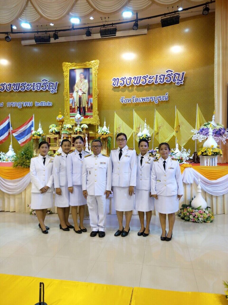 วันที่ 28 กรกฎาคม. 2562. นายประสงค์ ดารารัตน์. หัวหน้าฝ่ายบริหารทั่วไป. ศูนย์ป่าไม้เพชรบูรณ์. พร้อมด้วยเจ้าหน้าที่. ร่วมกิจกรรมเนื่องในโอกาสวันเฉลิมพระชนมพรรษาพระบาทสมเด็จพระเจ้าอยู่หัว ประจำปีพุทธศักราช 2562. ดังนี้. – เวลา 06.00 – 08.00 น. ร่วมพิธีทำบุญตักบาตรถวายเป็นพระราชกุศล ณ พุทธอุทยานเพชบุระ. ต.สะเดียง. อ.เมือง. จ.เพชรบูรณ์. – เวลา 08.30 – 09.30 น. ร่วมพิธีลงนามถวายพระพรชัยมงคล. และพิธีกล่าวคำปฏิญานตนเป็นข้าราชการที่ดีและพลังของแผ่นดิน ณ หอประชุมศูนย์ราชการจังหวัดเพชรบูรณ์ ศาลากลางจังหวัดเพชรบูรณ์