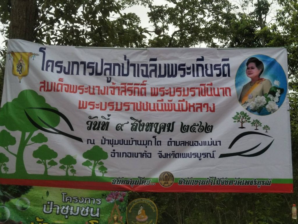 วันที่ 9 สิงหาคม 2562 หน่วยป้องกันรักษาป่าที่ พช.2 (เขาค้อ) ร่วมกับเจ้าหน้าที่ชุดปฎิบัติการพิเศษป่าไม้เพชรบูรณ์, องค์การบริหารส่วนตำบลหนองแม่นา, เจ้าหน้าที่ตำรวจ สภ.เขาค้อ,นักเรียนโรงเรียนการศึกษานอกโรงเรียน (กศน.) ตำบลหนองแม่นา, เจ้าหน้าที่ป่าชุมชนบ้านมุกโตและราษฎรจิตอาสาตำบลบลหนองแม่นา ร่วมกิจกรรมโครงการปลูกป่าเฉลิมพระเกียรสมเด็จพระนางเจ้าสิริกิติ์ พระบรมราชินีนาถ พระบรมราชชนนีพันปีหลวง และกิจกรรมบวชป่า ณ.บริเวณป่าชุมชนบ้านมุกโต หมู่ที่ 3 ต.หนองแม่นา อ.เขาค้อ จ.เพชรบูรณ์ โดยมีนางปราณี อินโฉม นายกองค์การบริหารส่วนตำบลหนองแม่นา เป็นประธาน