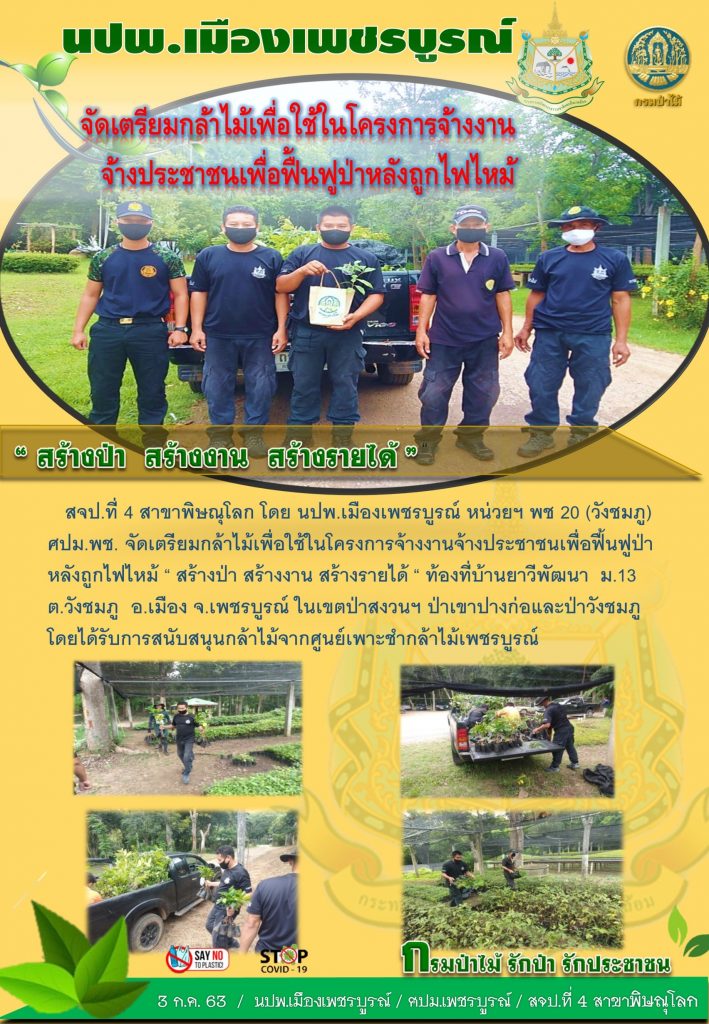 จัดเตรียมกล้าไม้เพื่อใช้ในโครงการจ้างงาน จ้างประชาชน เพื่อฟื้นฟูป่าหลังถูกไฟไหม้