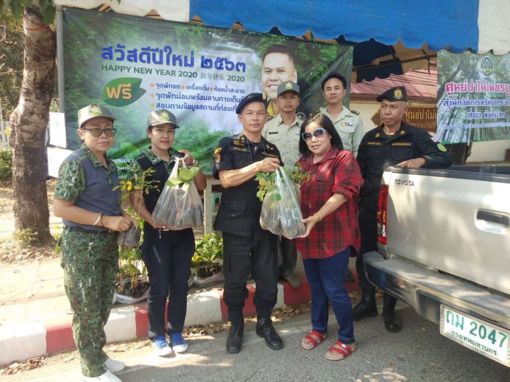 วันที่ 28 ธันวาคม 2562 เจ้าหน้าที่ศูนย์ป่าไม้เพชรบูรณ์ ร่วมกับหน่วยป้องกันรักษาป่าที่ พช.8(น้ำเดื่อ-บ้านโคก) หน่วยป้องกันรักษาป่าที่ พช.10 (ตะเบาะ) ประจำจุดบริการ บริเวณหน้าสำนักงานศูนย์ป่าไม้เพชรบูรณ์ เพื่ออำนวยความสะดวกแก่ประชาชนและนักท่องเที่ยวที่เดินทาง พร้อมมอบกล้าไม้ เพื่อเป็นของขวัญปีใหม่ให้กับประชาชน โดยมีประชาชนแวะใช้บริการสอบถามเส้นทาง และขอรับกล้าไม้เป็นจำนวนมาก