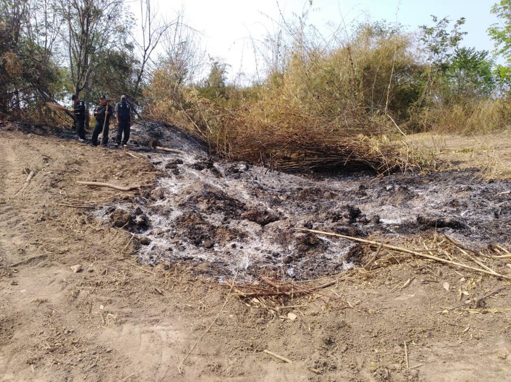จุดที่ 1 บริเวณพิกัดที่ 47Q 657953 E 1894160 N ป่าบ้านสามเส้า หมู่ที่ 9 ต.คันโช้ง อ. วัดโบสถ์ จ.พิษณุโลก ในเขตป่าสงวนลำน้ำแควน้อย เข้าดำเนินการในพื้นที่ดับไฟ เวลา13.00 น. บริเวณดับไฟเป็นพื้นที่ร่องห้วยพื้นที่เกษตรกร