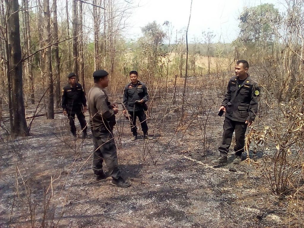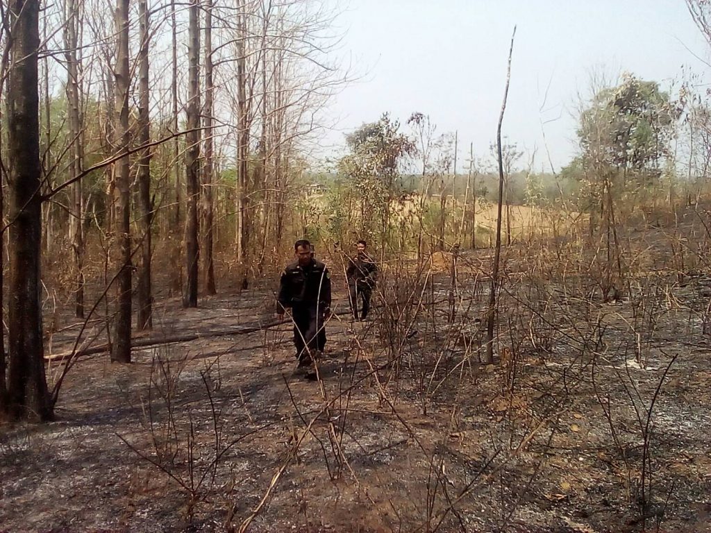 อยู่ในเขตป่าสงวนแห่งชาติป่าลำกงและป่าคลองตะโก สาเหตุ เกิดจากการจุดไฟเพื่อหาของป่า บริเวณพิกัดที่ 0740049 E 1773788 N พื้นที่ถูกไฟไหม้ จำนวน 35 ไร่