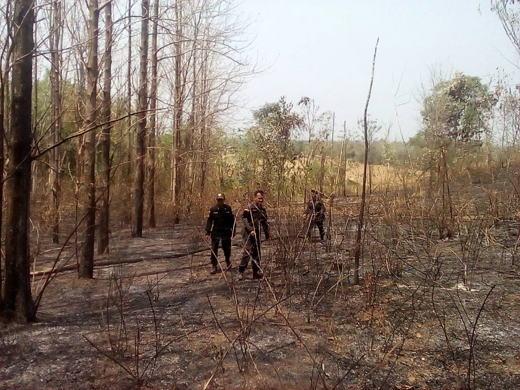 อยู่ในเขตป่าสงวนแห่งชาติป่าลำกงและป่าคลองตะโก สาเหตุ เกิดจากการจุดไฟเพื่อหาของป่า บริเวณพิกัดที่ 0740678 E 1766248 N พื้นที่ถูกไฟไหม้ จำนวน 23 ไร่