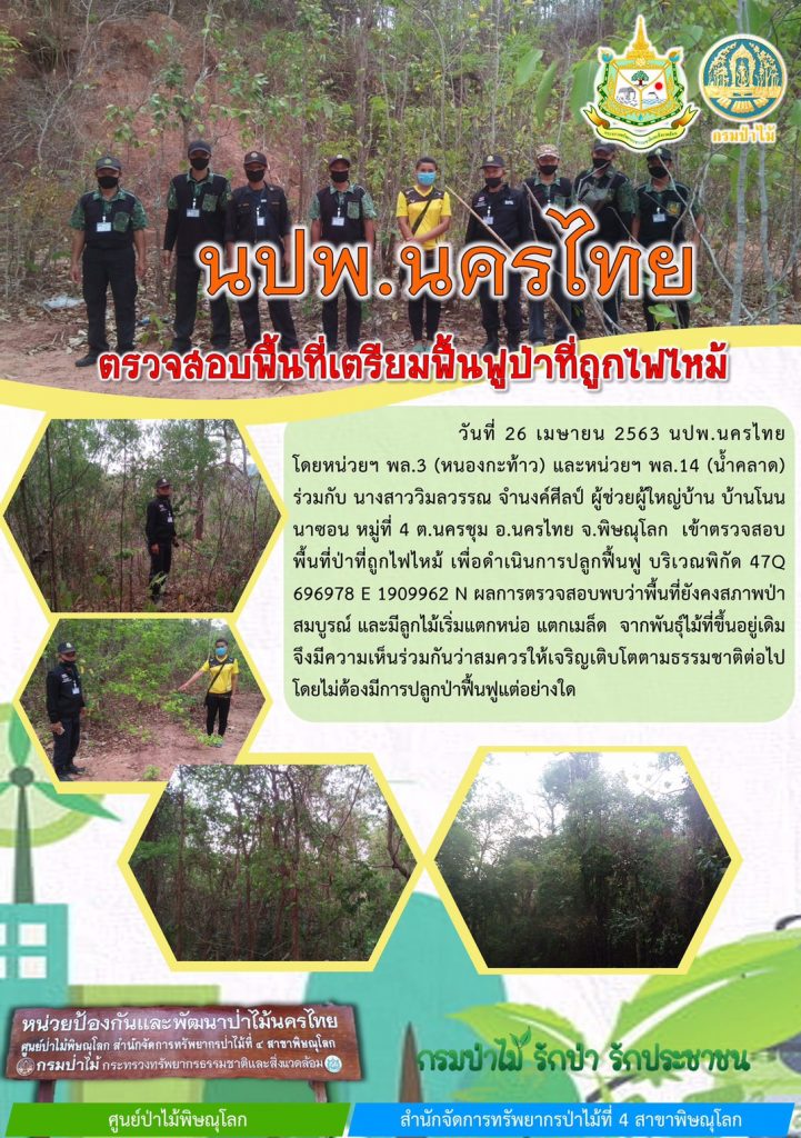 นปพ.นครไทย ตรวจสอบพื้นที่เตรียมฟื้นฟูป่าที่ถูกไฟไหม้