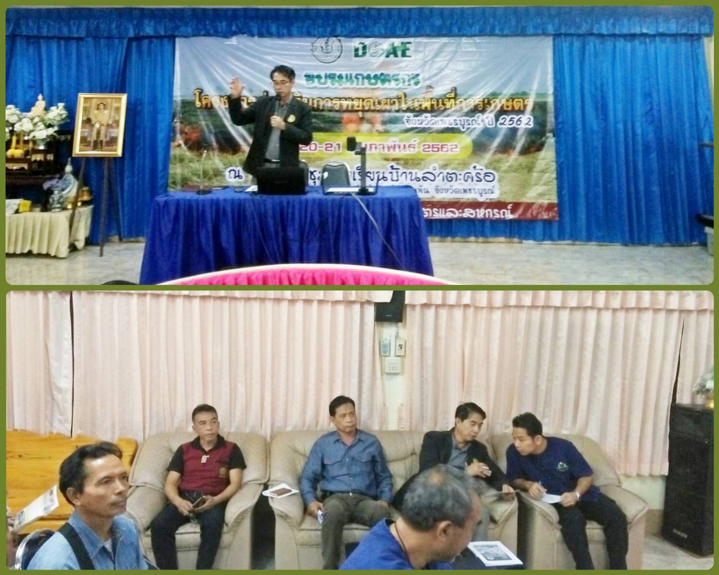 วันที่ ๒๐ ก.พ.๖๒ สจป.ที่ 4 สาขาพิษณุโลกโดยนายกฤษดา จันทร์โท ทำหน้าที่หัวหน้าหน่วยส่งเสริมการควบคุมไฟป่าวิเชียรบุรี เข้าร่วมบรรยายในหัวข้อการควบคุมการเผาในพื้นที่การเกษตร โครการส่งเสริมการหยุดเผาในพื้นที่การเกษตร ปี ๒๕๖๒ ณ โรงเรียนบ้านลำตะคร้อ หมู่ที่ ๔ ต.กันจุ อ.บึงสามพัน จ.เพชรบูรณ์ มีการเกษตรกรเข้าร่วมอบรม จำนวน ๑๒๐ คน โดยมีนายสถิตย์ ยะแก้ว หน.กลุ่มส่งเสริมและพัฒนาการผลิต สำนักงานการเกษตรจังหวัด เป็นประธานในพิธี