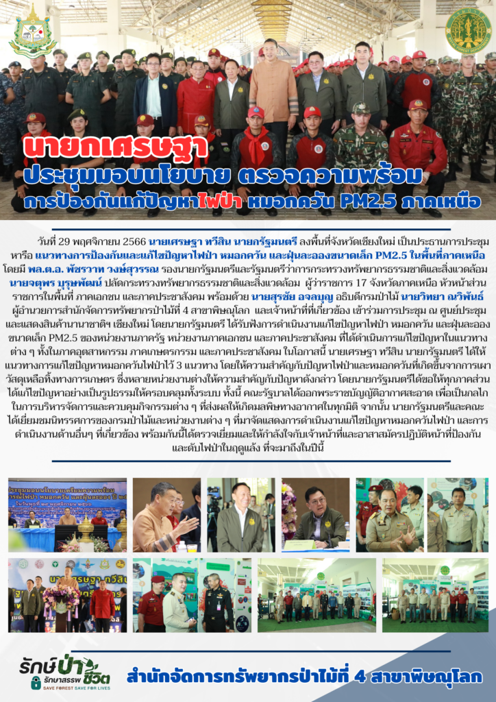 นายกเศรษฐา ประชุมมอบนโยบาย ตรวจความพร้อมการป้องกันแก้ปัญหาไฟป่า หมอกควัน PM 2.5 ภาคเหนือ