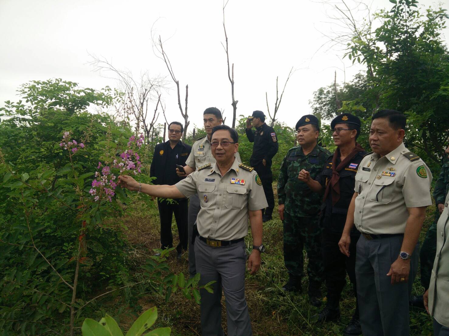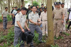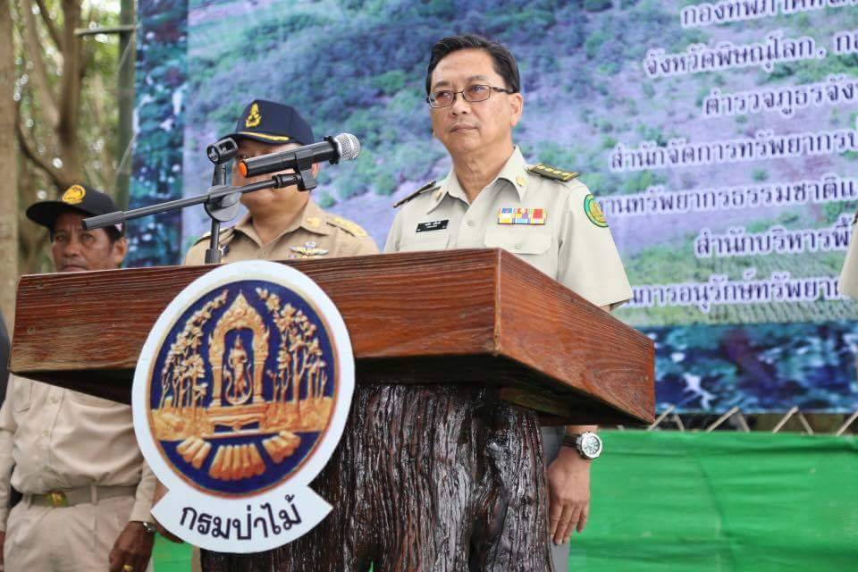 วันอังคารที่ 15 สิงหาคม 2560 เวลา 10.00 น. นายชลธิศ สุรัสวดี อธิบดีกรมป่าไม้ พร้อมด้วยนายอรรถพล เจริญชันษา รองอธิบดีกรมป่าไม้นายชีวะภาพ ชีวะธรรม หัวหน้าชุดปฏิบัติการพยัคฆ์ไพร และนายบุญลาภ สุกใส ผู้อำนวยการสำนักจัดการทรัพยากรป่าไม้ที่ 4 สาขาพิษณุโลกลงพื้นที่ร่วมกับ พ.อ.วิทยา แก้วพรม เสนาธิการมณฑลทหารบกที่ 39 พ.อ.จิตรกร บุญตา ผู้แทนกอ.รมน.พิษณุโลก นายชวนินทร์ วงศ์สถิตจิรการ นายอำเภอนครไทย ฝ่ายทหาร องค์กรปกครองส่วนท้องถิ่น และหน่วยงานต่างๆ ที่เกี่ยวข้อง เพื่อติดตามการปฏิบัติงานเชิงรุกในการบังคับใช้กฎหมายและการควบคุมการกรีดยางพาราต่อกลุ่มนายทุนที่บุกรุกพื้นที่ปลูกยางพาราในเขตป่าสงวนแห่งชาติป่าเขากระยาง ท้องที่บ้านเกษตรสุข หมู่ที่ 5 ต.บ้านแยง อ.นครไทย จ.พิษณุโลก พร้อมกับการสร้างความรับรู้ความเข้าใจที่ถูกต้องกับราษฎรในพื้นที่และผู้นำชุมชนถึงมาตรการดังกล่าว ซึ่งเป็นไปตามคำสั่ง คสช.ที่ 64/2557 และ 66/2557 รวมทั้งแผนปฏิบัติการศูนย์ปฏิบัติการพิทักษ์ป่า (ศปก.พป.) กระทรวงทรัพยากรธรรมชาติและสิ่งแวดล้อม ภายใต้การนำของพลเอกสุรศักดิ์ กาญจนรัตน์ รมว.ทส. ซึ่งจังหวัดพิษณุโลกนั้นมีพื้นที่ป่าจำนวน 1,356,493 ไร่ ถูกบุกรุกเพื่อปลูกยางพาราตำนวน 158,615 ไร่ โดยคาดว่าเป็นการบุกรุกของกลุ่มนายทุนไม่ต่ำกว่า 30,000 ไร่ ทั้งนี้ ได้ดำเนินการตรวจยึดดำเนินคดีแล้วจำนวน 23,173 ไร่ และได้ดำเนินการรื้อถอนตามมาตรา 25 แล้วจำนวน 4,394 ไร่ รวมทั้งดำเนินการปลูกฟื้นฟูป่าในพื้นที่ตัดฟันแล้วจำนวน 3,109 ไร่ ทั้งนี้ได้ลงพื้นที่ตรวจเยี่ยมฐานปฏิบัติการฟื้นฟูป่าต้นนำ้น่าน ฐานที่ 4 (บ้านตอเรือ) ต.วังนกแอ่น อ.วังทอง จ.พิษณุโลก ซึ่งได้ดำเนินการรื้อถอนตามมาตรา 25 และปลูกพื้นฟูป่าจำนวน 1,150 ไร่ ซึ่งขณะนี้ต้นไม้ที่ปลูกไว้ได้เจริญเติบโตขึ้นอย่างรวดเร็ว ส่งผลให้ระบบนิเวศโดยรอบกลับมาฟื้นคืนความสมบูรณ์อีกครั้ง