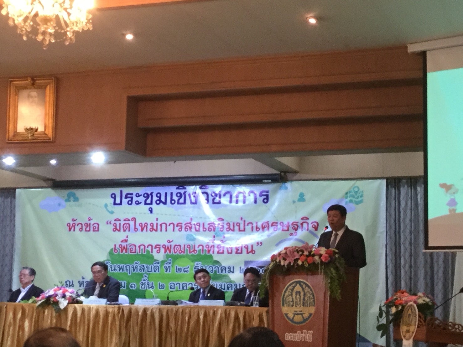 วันที่ 28 ธันวาคม 2560 เวลา 08.00-17.15 น. นายบัณฑิต วงศ์เสนานุรักษ์ ทำหน้าที่หัวหน้าฝ่ายปลูกป่า พร้อมด้วยนายสุฤทธิ์ เวชวินิจ นักวิชาการป่าไม้ปฏิบัติการ ส่วนส่งเสริมการปลูกป่า สจป.ที่ 4 สาขาพิษณุโลก ได้ไปร่วมประชุมเชิงวิชาการ หัวข้อ “มิติใหม่การส่งเสริมป่าเศรษฐกิจเพื่อการพัฒนาที่ยั่งยืน” ณ ห้องประชุม 1 ชั้น 2 อาคารเทียมคมกฤส กรมป่าไม้ กรุงเทพฯ โดยมี พลเอก สุรศักดิ์ กาญจนรัตน์ รัฐมนตรีว่าการกระทรวงทรัพยากรธรรมชาติและสิ่งแวดล้อม กล่าวเปิดประชุม นายวิจารย์ สิมาฉายา ปลัดกระทรวง ทส. กล่าวรายงาน มีการเสวนา เรื่อง “ป่าเศรษฐกิจ ปลูกง่ายตัดง่าย ไม่มีไม้สวมตอ” ซึ่งมีวิทยากรจากหลายภาคส่วน มีการซักถาม ตอบปัญหาต่างๆ ในภาคบ่ายการเสวนาต่อ เรื่อง “อุตสาหกรรมป่าไม้ไทย จะสดใสได้อย่างไร” โดยมีวิทยากรจากหลายภาคส่วน รวมทั้งระดมข้อคิดเห็น ซักถาม ชี้แจง ข้อสงสัยต่างๆ และ มีนายวิจารย์ สิมาฉายา ปลัดกระทรวง ทส. เป็นผู้กล่าวปิดประชุม ในส่วนของกรมป่าไม้มี รองอธิบดีฯ ทั้ง 3 ท่าน ผอ.สำนักฯ ผอ.ส่วนฯ จนท.เข้าร่วมประชุม รวมทั้งผู้ประกอบการ ออป. บริษัทต่างๆ ที่เกี่ยวข้อง