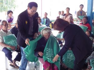 2. ณ โรงเรียนบ้านโป่งกะเฌอ ต.เนินเพิ่ม อ.นครไทย จ.พิษณุโลก มอบผ้าห่มแก่ราษฎร 3 หมู่บ้าน จำนวน 145 ผืน พร้อมทั้งได้ประชาสัมพันธ์โครงการสร้างป่า สร้างรายได้ และให้ช่วยกันดูแลรักษาป่า โดยมี ผู้ใหญ่บ้าน ทั้ง 3 หมู่บ้านและราษฎร ร่วมรับมอบ