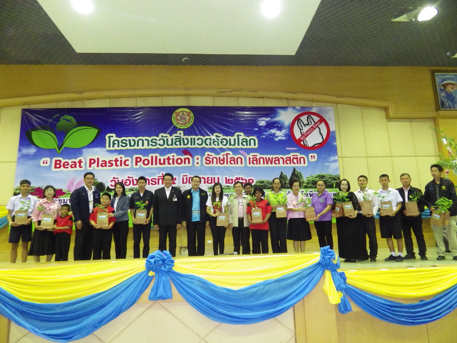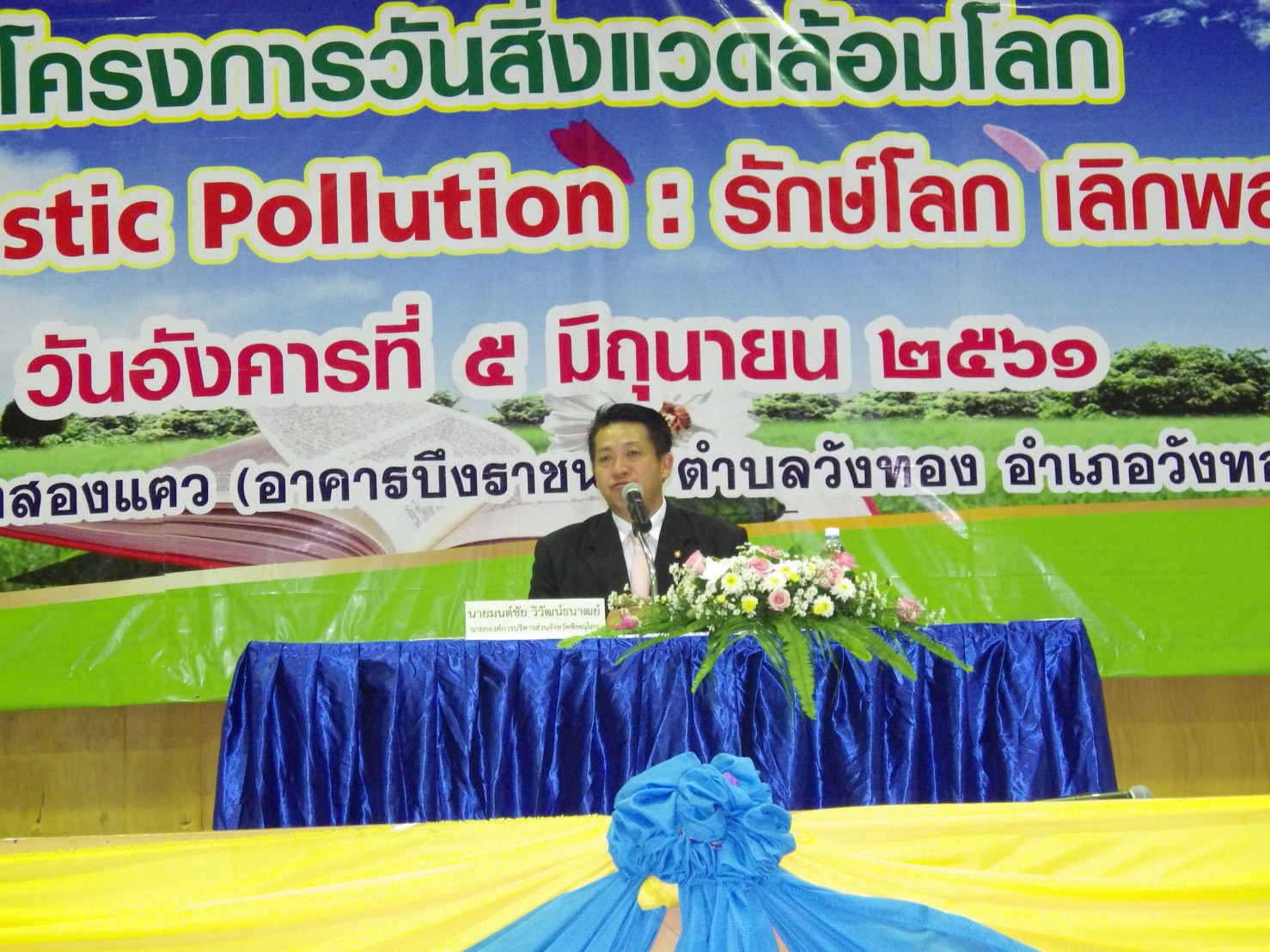 วันที่ 5 มิถุนายน 2561 เวลา 08.00-11.00 น. นายบัณฑิต วงศ์เสนานุรักษ์ ผอ.ส่วนโครงการพระราชดำริและกิจการพิเศษ และ ผอ.ศูนย์ป่าไม้พิษณุโลก พร้อมด้วย จนท.ศูนย์การเรียนรู้ด้านทรัพยากรธรรมชาติและสิ่งแวดล้อม จ.พิษณุโลก และพนักงาน บริษัท ตะวันแดง มหาซน ณ พิษณุโลก จำกัด ไปร่วมโครงการวันสิ่งแวดล้อมโลก ณ ห้องสรลวงสองแคว(อาคารบึงราชนก) ต.วังทอง อ.วังทอง จ.พิษณุโลก. โดยมีนายมนต์ชัย วิวัฒน์ธนาฒย์ นายก อบจ.พิษณุโลก เป็นประธานในพิธี มีผู้มีเกียรติร่วมงานได้แก่ นางประนอม ทิวะพันธุ์ ที่ปรึกษานายก อบจ.พิษณุโลก หน่วยงานฯ ต่างๆ นักเรียนจำนวน 7 โรงเรียน ผู้นำชุมชน เครือข่าย และประชาชน จำนวนประมาณ 400 คน ในการนี้ได้จัดนิทรรศการ นำกล้าไม้แจกบนเวที และแจกจ่ายแก่ผู้ร่วมงาน จำนวน 300 ต้น