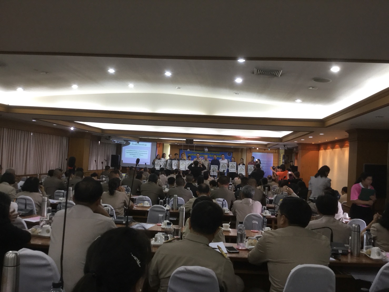 วันที่ 25 กันยายน 2561 เวลา 09.00-12.00 น. นายบัณฑิต วงศ์เสนานุรักษ์ ผอ.ส่วนโครงการพระราชดำริและกิจการพิเศษ ผู้แทน ผอ.สจป.ที่ 4 สาขาพิษณุโลก เข้าร่วมประชุมคณะกรมการจังหวัดและหัวหน้าส่วนราชการจังหวัดพิษณุโลก ครั้งที่ 9/2561 ประจำเดือนกันยายน 2561 ณ ห้องประชุมพระพุทธชินราช ศาลากลางจังหวัดพิษณุโลก โดยมีนายภัคพงศ์ ทวิพัฒน์ ผู้ว่าราชการจังหวัดพิษณุโลก เป็นประธานในที่ประชุม มี รอง ผวจ.ทั้ง 3 ท่าน หน.ส่วนราชการ ตลอดจนภาคเอกชน ที่เกี่ยวข้องเข้าร่วมประชุม ในที่ประชุมได้เน้นย้ำการเร่งรัดการเบิกจ่ายเนื่องจากจะสิ้นสุดปีงบประมาณ พ.ศ.2561 และแจ้งว่า ผวจ.ท่านใหม่ จะได้นัดหมาย หน.ส่วนราชการประชุมพบปะ และมอบนโยบาย ในวันจันทร์ ที่ 1 ตุลาคม 2561 ซึ่งจะแจ้งยืนยันต่อไป