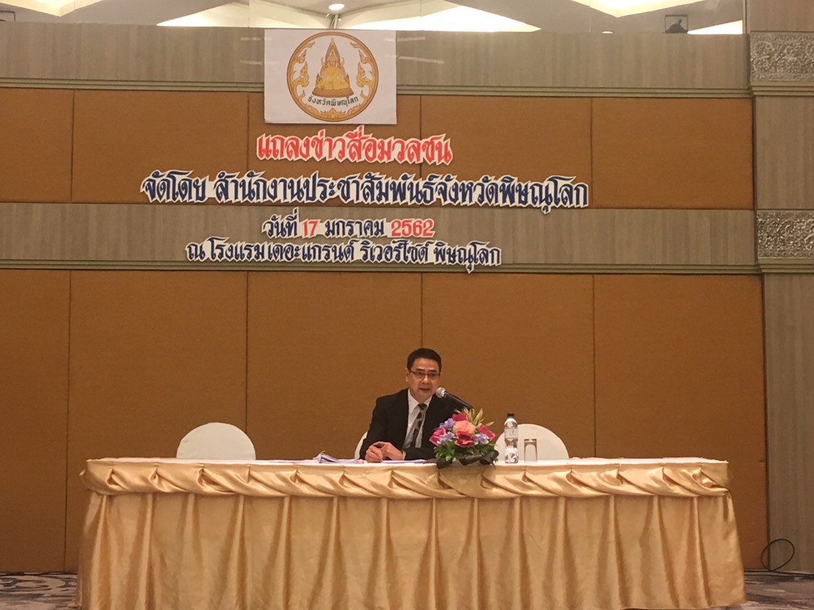 วันที่ 17 ม.ค. 2562 เวลา 10.00-12.00 น. นายบัณฑิต วงศ์เสนานุรักษ์ ผอ.ส่วนโครงการพระราชดำริและกิจการพิเศษ และ ทำหน้าที่หัวหน้าฝ่ายสารสนเทศ สจป.ที่ 4 สาขาพิษณุโลก ไปร่วมงานแถลงข่าวสื่อมวลชน จ.พิษณุโลก เดือนมกราคม 2562 ณ โรงแรมเดอะแกรนด์ริเวอร์ไซด์ อ.เมือง จ.พิษณุโลก โดยมี ดร.สุรชัย มณีประกร รอง ผวจ.พิษณุโลก เป็นประธาน มีหัวหน้าส่วนราชการ ภาคเอกชน สื่อมวลชน เจ้าหน้าที่ นางงามเมืองพิษณุโลก เข้าร่วมงานรวมทั้งสิ้นประมาณ 150 คน