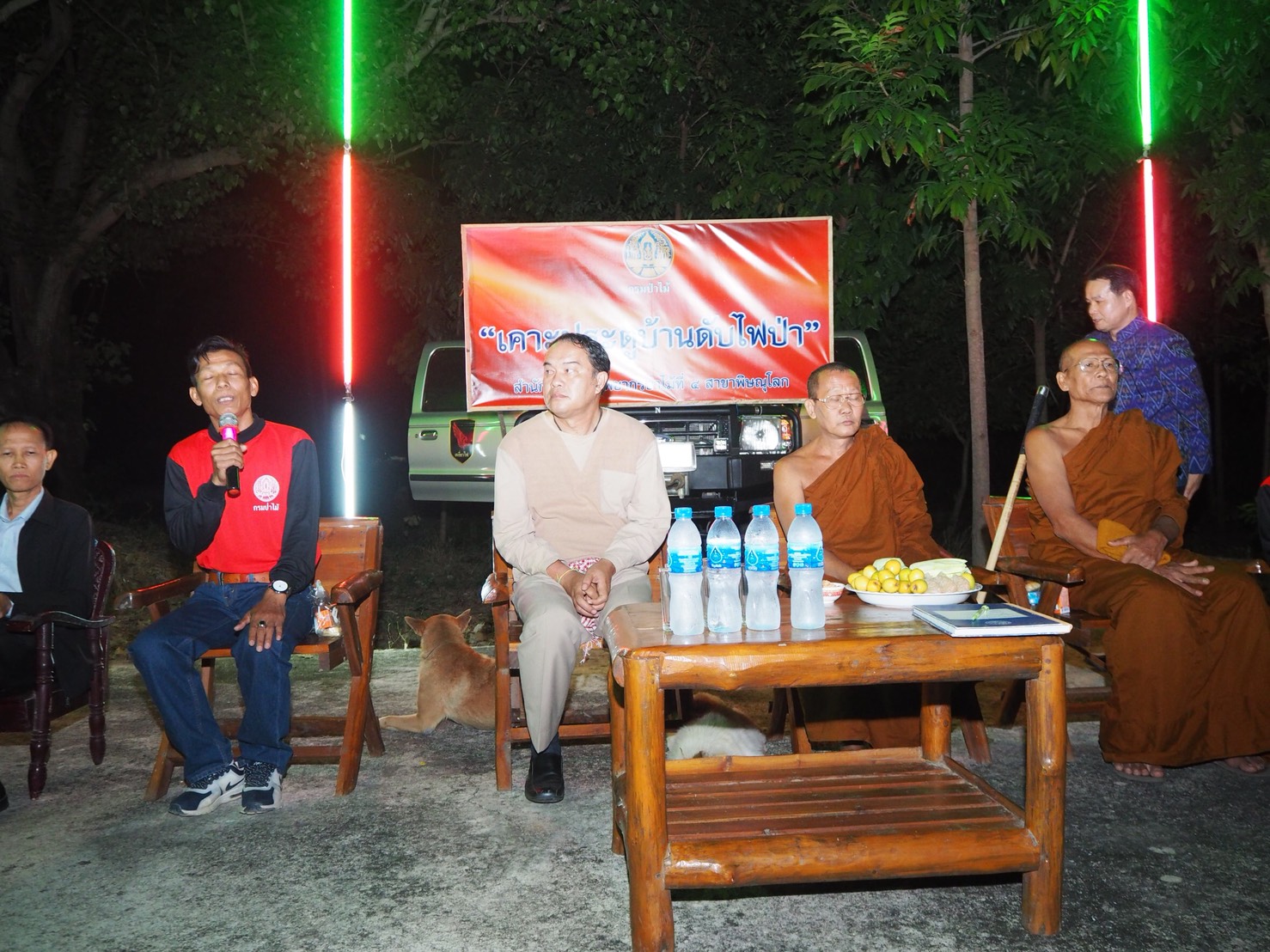 วันที่ 24 มกราคม 2561 เวลา 19.00-21.30 น. นายบุญลาภ สุกใส ผอ.สจป.ที่ 4 สาขาพิษณุโลก พร้อมเจ้าหน้าที่ ได้ไปร่วมงานเสวนาในหัวข้อ “เคาะประตูบ้านดับไฟป่า” ณ วัดทุ่งน้อย (คีรีบรรพต) ต.ท่าหมื่นราม อ.วังทอง จ.พิษณุโลก โดยมีนายจเรศักดิ์ นันตะวงษ์ รองอธิบดีกรมป่าไม้ รักษาราชการแทนอธิบดีกรมป่าไม้ มาเป็นประธานในการเสวนา มีวิทยากรที่ร่วมเสวนาได้แก่ พระรันดร ถาวระคุโน เจ้าอาวาสวัดทุ่งน้อย นายบรรพต โคตรเทิ้ง ผู้แทน สนง.ปภ.จ.พิษณุโลก นายสยาม แสนประสิทธิ์ นายก อบต.ท่าหมื่นราม นายไชยยันต์ ปัญญาคำ กำนัน ต.ท่าหมื่นราม นายปฏิภาณ ศรีคำทา ประธานเครือข่ายป่าชุมชน ม.8 น.ส.ปรานอม เถื่อนคุ้ม ประธานเครือข่ายไฟป่า ม.8 นายคำรณ ศรีคำทา ประธานสภา อบต.ท่าหมื่นราม ได้มอบหมายให้นายบัณฑิต วงศ์เสนานุรักษ์ ผอ.ส่วนโครงการพระราชดำริและกิจการพิเศษ และทำหน้าที่ป่าไม้จังหวัดพิษณุโลก เป็นพิธีกรในการเสวนา สำหรับการเสวนาครั้งนี้ ได้มุ่งเน้นถึงการบูรณาการทุกภาคส่วน ในการป้องกันและแก้ไขปัญหาไฟป่า และในด้านที่เกี่ยวข้อง พร้อมทั้งแลกเปลี่ยนข้อคิดเห็น ตอบปัญหา เสนอแนะแนวทาง ข้อเรียกร้องต่างๆ พร้อมทั้งได้เตรียมอาหารมาร่วมรับประทานในบริเวณที่เสวนา ซึ่งมีราษฎรในพื้นที่มาร่วมงานเสวนาจากหลายหมู่บ้านและรับว่าจะให้ความร่วมมือกันอย่างต่อเนื่องต่อไป