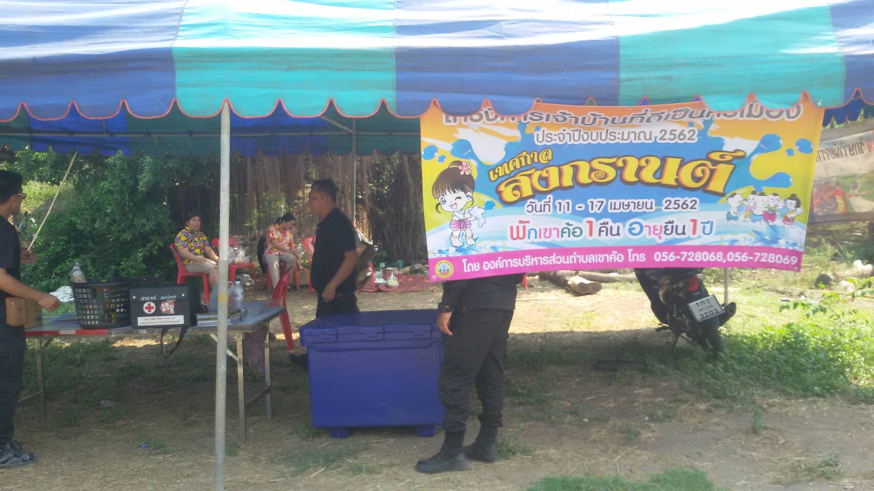 วันที่ 14 เมษายน 2562 นายสมศักดิ์ ชวนชม หัวหน้าหน่วยป้องกันรักษาป่าที่ พช.2 (เขาค้อ) ได้สั่งการให้เวร-ยามเตรียมพร้อมในที่ตั้งและร่วมตั้งจุดบริการประชาชนและนักท่องเที่ยวในช่วงสงกรานต์ ณ.บริเวณบ้านจะวะสิต หมู่ที่ 1 ต.ริมสีม่วง อ.เขาค้อ จ.เพชรบูรณ์ ร่วมกับผู้ใหญ่บ้าน หมู่ที่ 2 บ้านคณิตคำเที่ยง ต.ริมสีม่วง อ.เขาค้อ จ.เพชรบูรณ์ ผู้ช่วยผู้ใหญ่บ้าน หมู่ที่ 2 บ้านคณิตคำเที่ยง ต.ริมสีม่วง อ.เขาค้อ จ.เพชรบูรณ์ นาย บุญเคลือบ โพธิ์ทอง (ผ.ร.ส อ.เขาค้อ จ.เพชรบูรณ์) ผู้ช่วยผู้ใหญ่บ้านคณิตคำเที่ยง หมู่ที่ 2 ต.ริมสีม่วง อ.เขาค้อ จ.เพชรบูรณ์ พร้อมกับมอบน้ำดื่มและกาแฟให้กับเจ้าหน้าที่ประจำจุดบริการประชาชน
