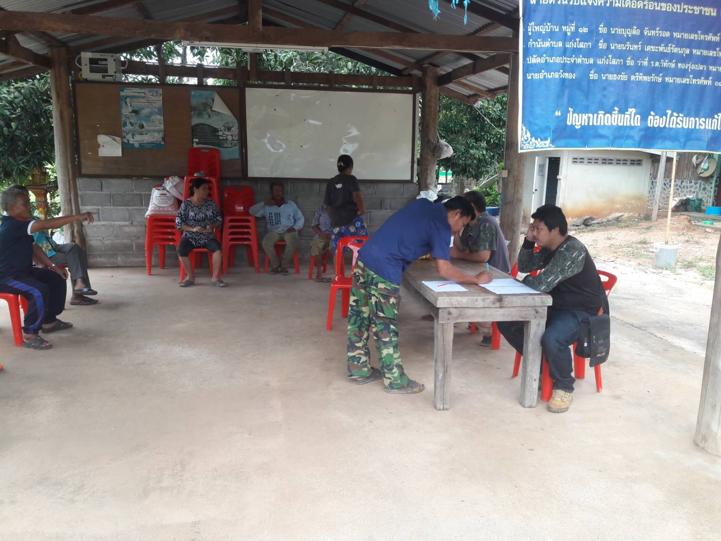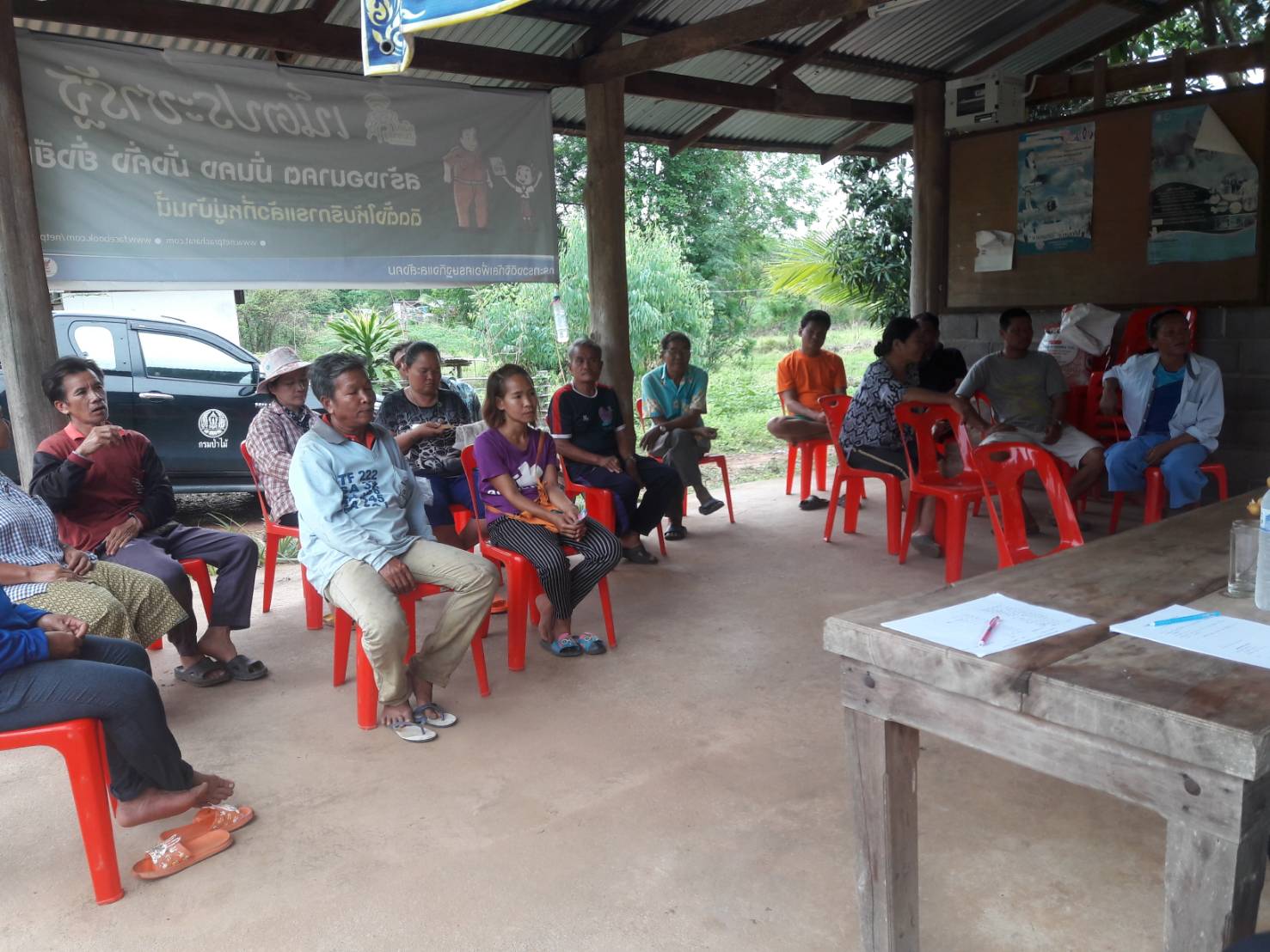 นายสุรศักดิ์ พีรภูติ หัวหน้าฝ่ายกำหนดเขต พร้อมด้วยนายประพล อินทร์ชื่น นายจักรี ตลุ่มเครือ ร่วมประชุมชี้แจงทำความเข้าใจกับราษฎรหมู่ที่ 12 ต.แก่งโสภา อ.วังทอง จ.พิษณุโลก เรื่องการจัดทำและฝังหลักเขตป่าสงวนแห่งชาติป่าแม่น้ำเข็ก