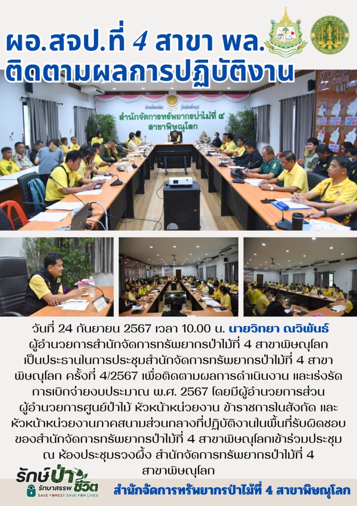 ประชุมสำนักจัดการทรัพยากรป่าไม้ที่ 4 สาขาพิษณุโลก ครั้งที่ 4/2567 เมื่อวันที่ 24 กันยายน 2567